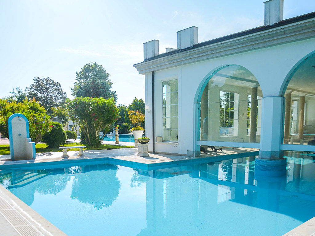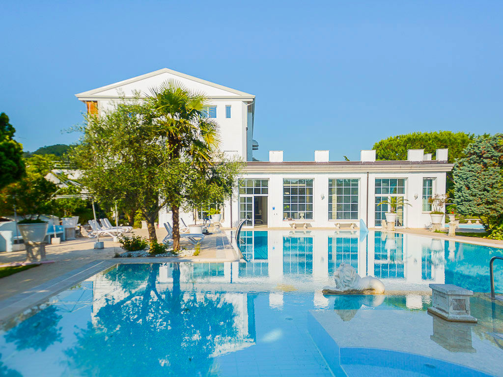 Servizi A disposizione degli ospiti reception 24h, ascensore, servizio facchinaggio, deposito e noleggio biciclette (gratuito) secondo disponibiliità, bar, ristorante, sala TV, giardino, connessione Wi-Fi nelle aree comuni (gratuita), parcheggio secondo disponibilità (gratuito), culla per infant 0-3 anni non compiuti su richiesta alla prenotazione secondo disponibilità (15 euro al giorno da pagare in loco) centro benessere con piscina termale coperta, idromassaggi, sauna con sale rosa dell'Himalaya, bagno turcoCamere