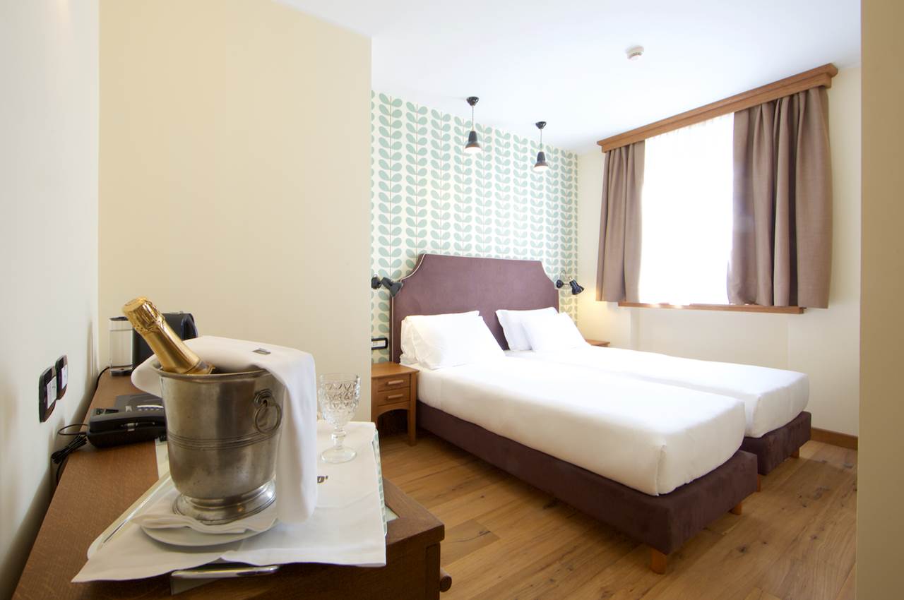 60 camere profondamente ispirate al design degli anni '50 e '60 che non trascurano le comodità tecnologiche del nostro tempo: pavimenti in legno di rovere francese, docce in pietra ricostruita, vasche da bagno Kaldewei in acciaio smaltato, prodotti cosmetici naturali Dr. Nicola, materassi Myform Dorelan, set te/ caffè, connessione fibra Wi-Fi, TV LED 32/42 pollici con programmazione Sky gratuita e cassette di sicurezza per laptop. Camera Comfort: elegante camera finemente arredata in stile retrò anni '50, con pavimento in legno di rovere francese, mobili artigianali italiani in rovere massello, pregiate carte da parati inglesi e americane I due letti singoli di 200 cm di lunghezza e 90 cm di larghezza possono essere uniti su richiesta per creare un comodo letto matrimoniale (200 cm x 180 cm).Amici a 4 Zampe
