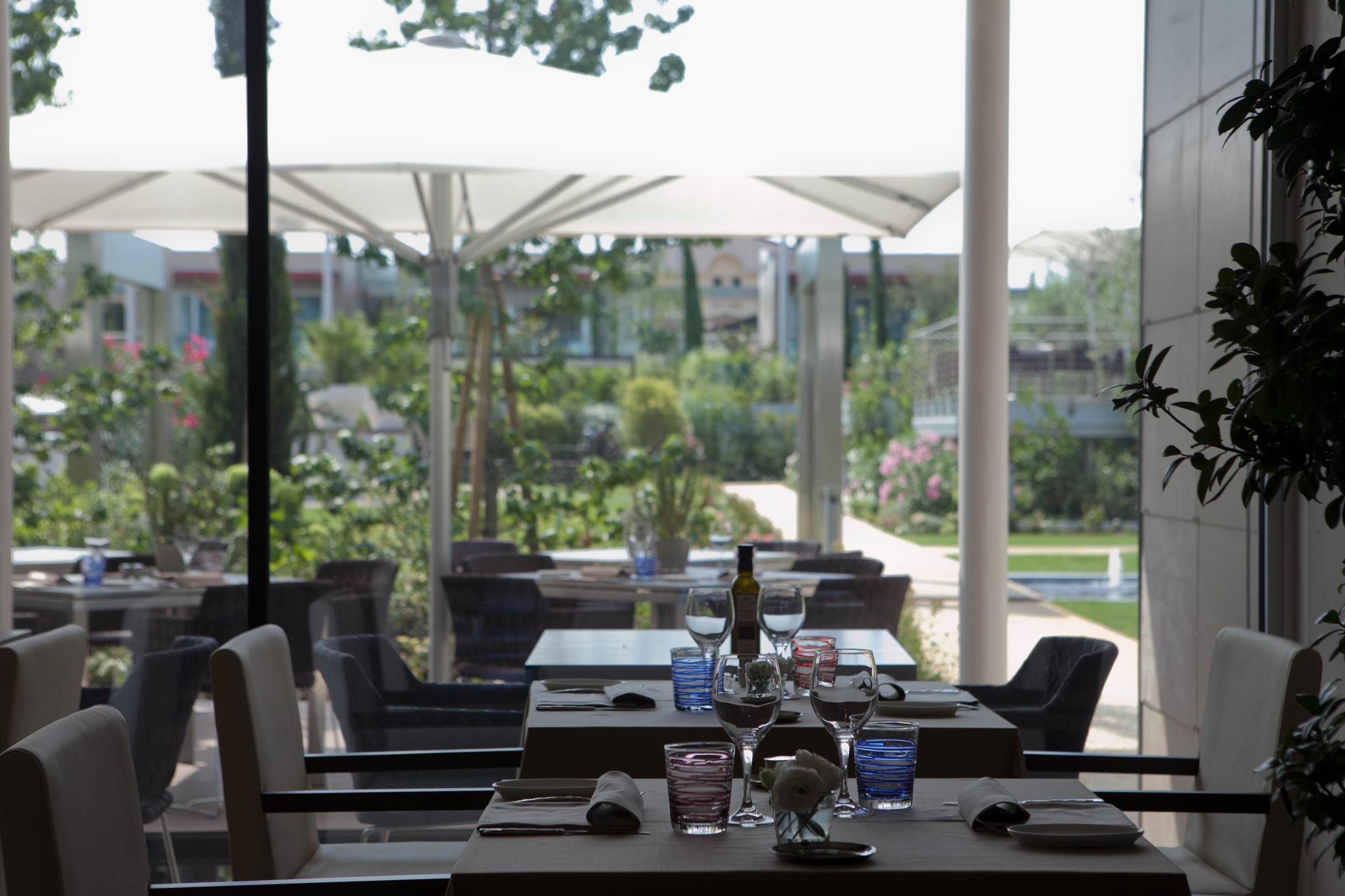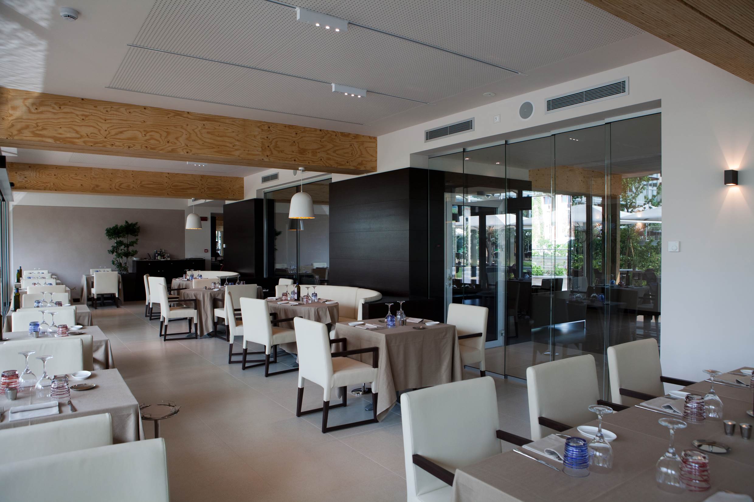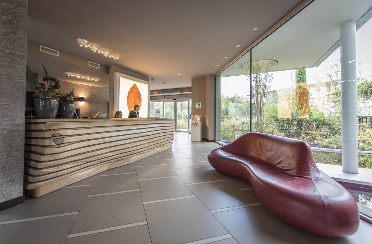 È la prima struttura sul Lago di Garda a ottenere la certificazione ClimaHotel. La sua architettura a forma quadrata si fonde armoniosamente con l’ambiente circostante, riducendo l’impatto ambientale. La struttura si estende su una superficie di 17.000 m² e presenta ampie vetrate che offrono una vista spettacolare sul cortile e sull’area acquatica, creando un’atmosfera luminosa e accogliente.