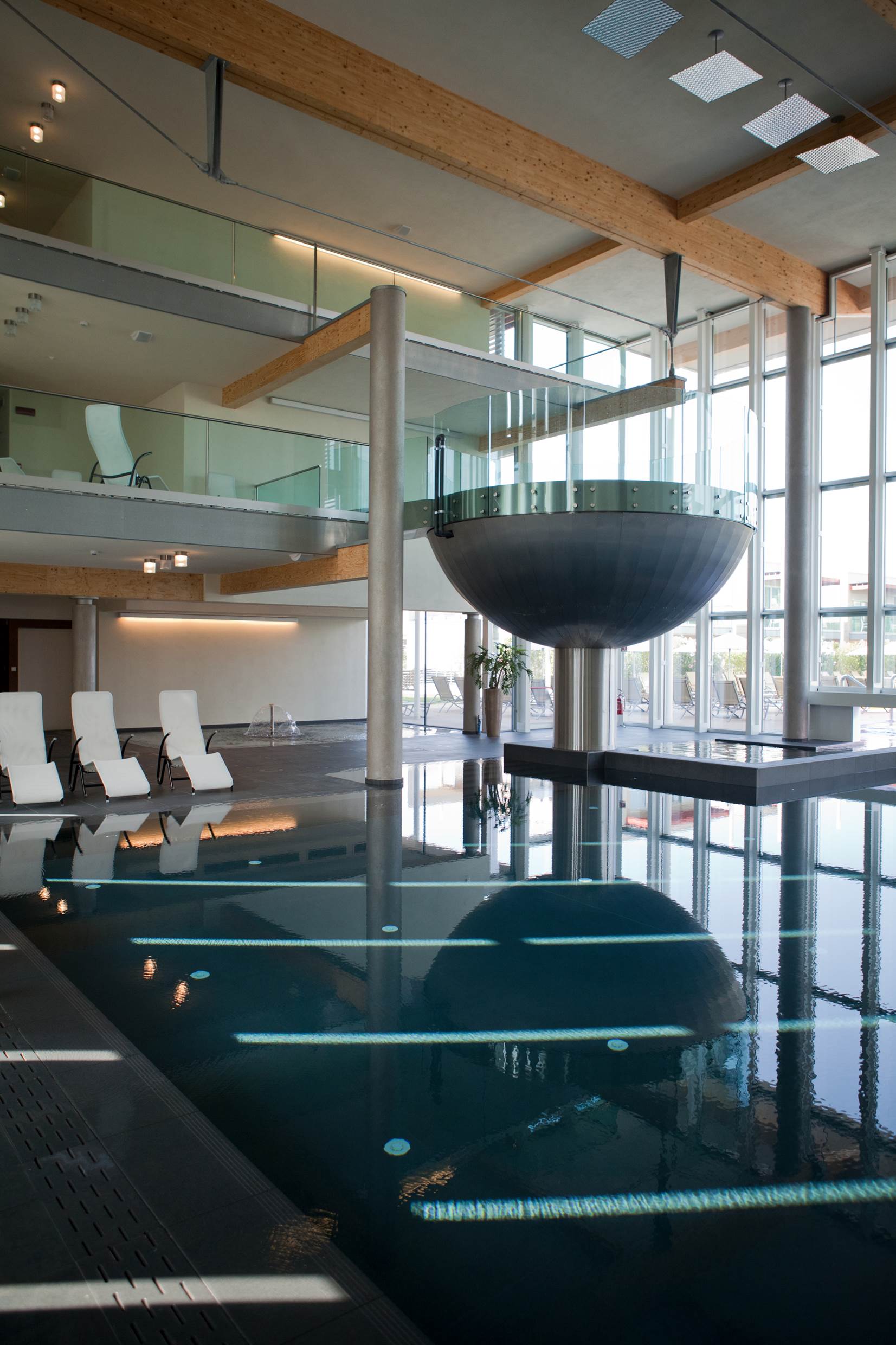 Utilizzo delle piscine (interne ed esterne), ombrelloni, sdraio e telo piscina inclusi.