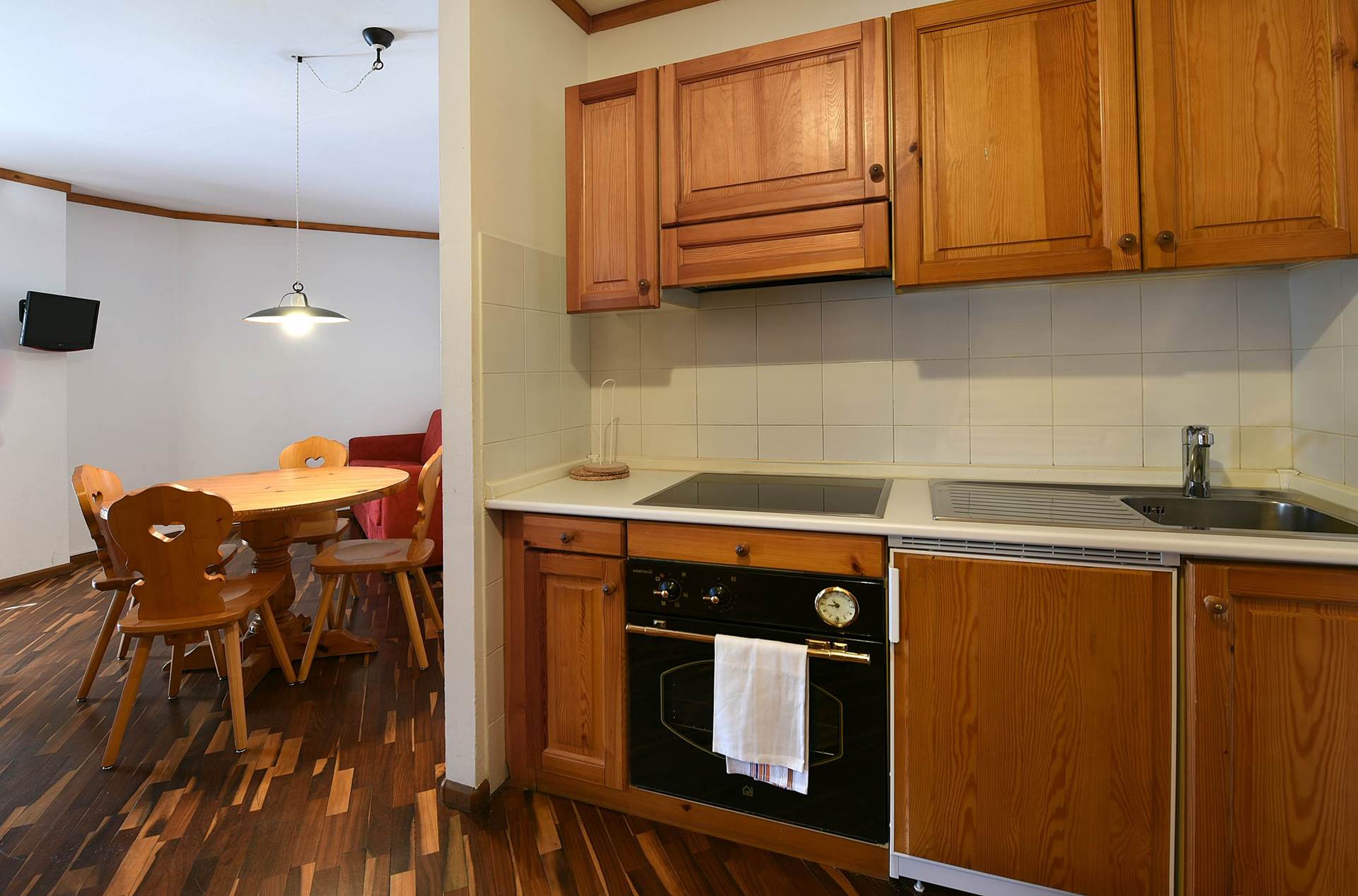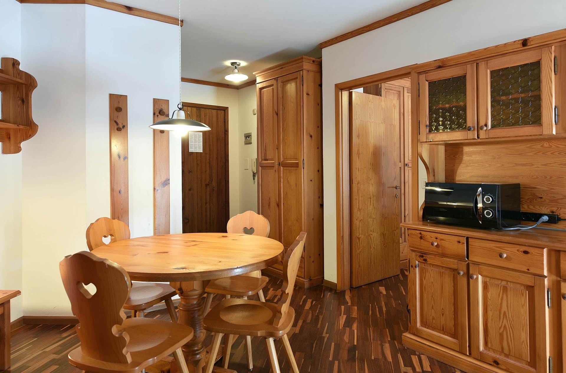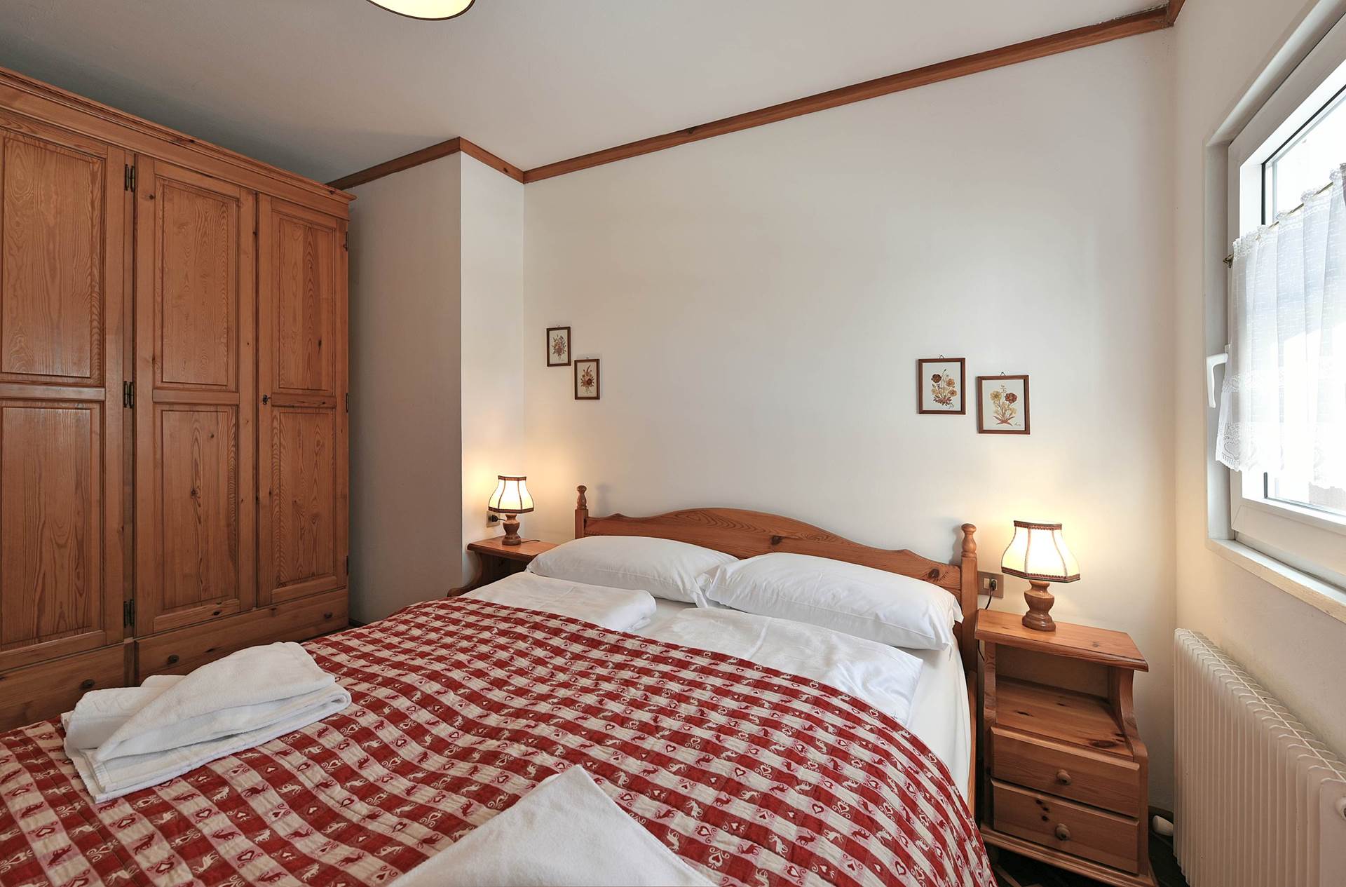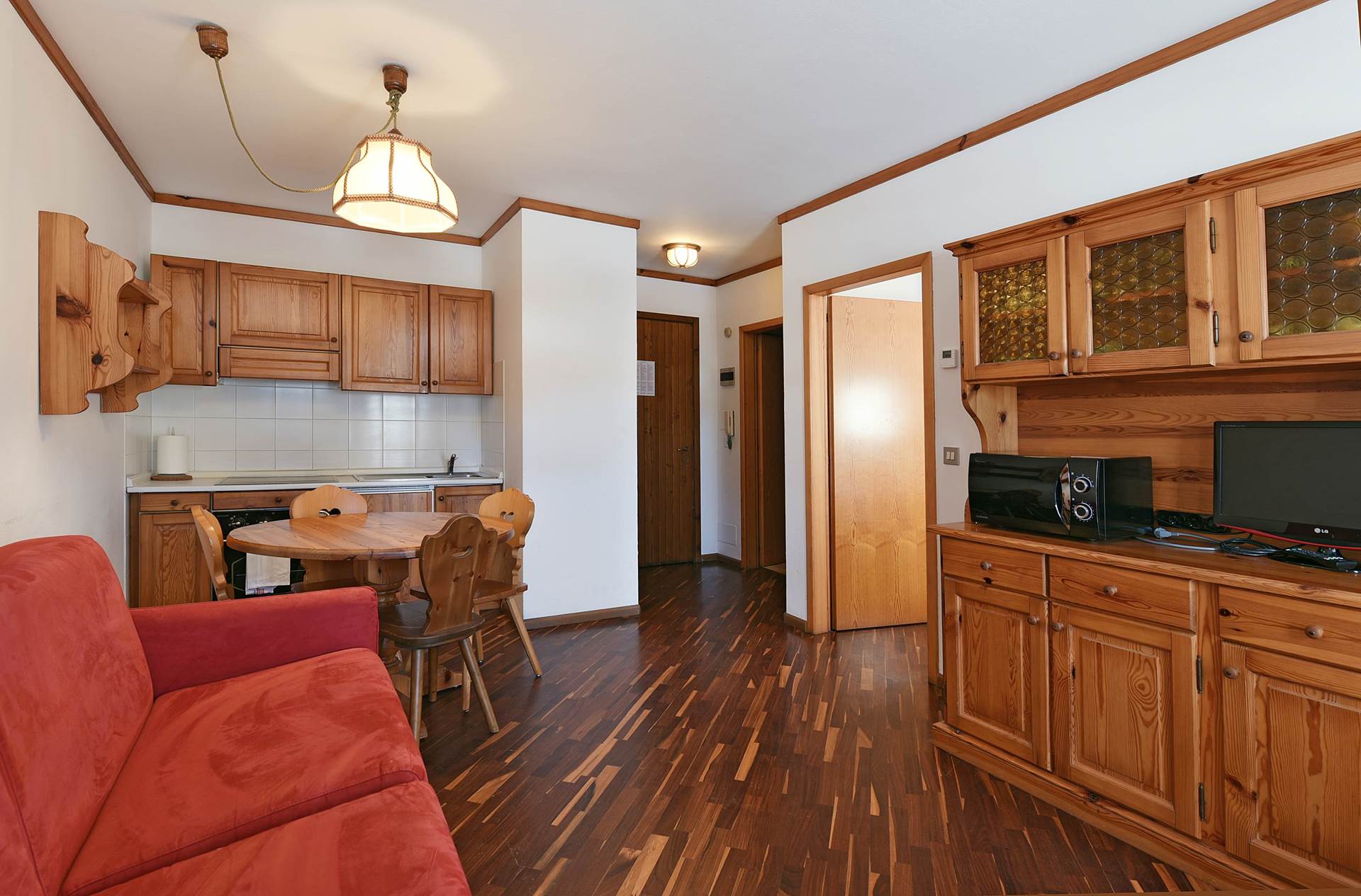 BILO: ca 40 mq (da 1 a 4 persone). Arredati in stile tipico tirolese con mobili in legno massiccio e rustico e pavimenti in parquet. Soggiorno con divano leto matrimoniale, TV, angolo cottura (piastre elettriche, forno, frigo, forno a microonde). Camera matrimoniale con ampi armadi. Bagno con vasca (doccia nella vasca), phon Riscaldamento autonomo
