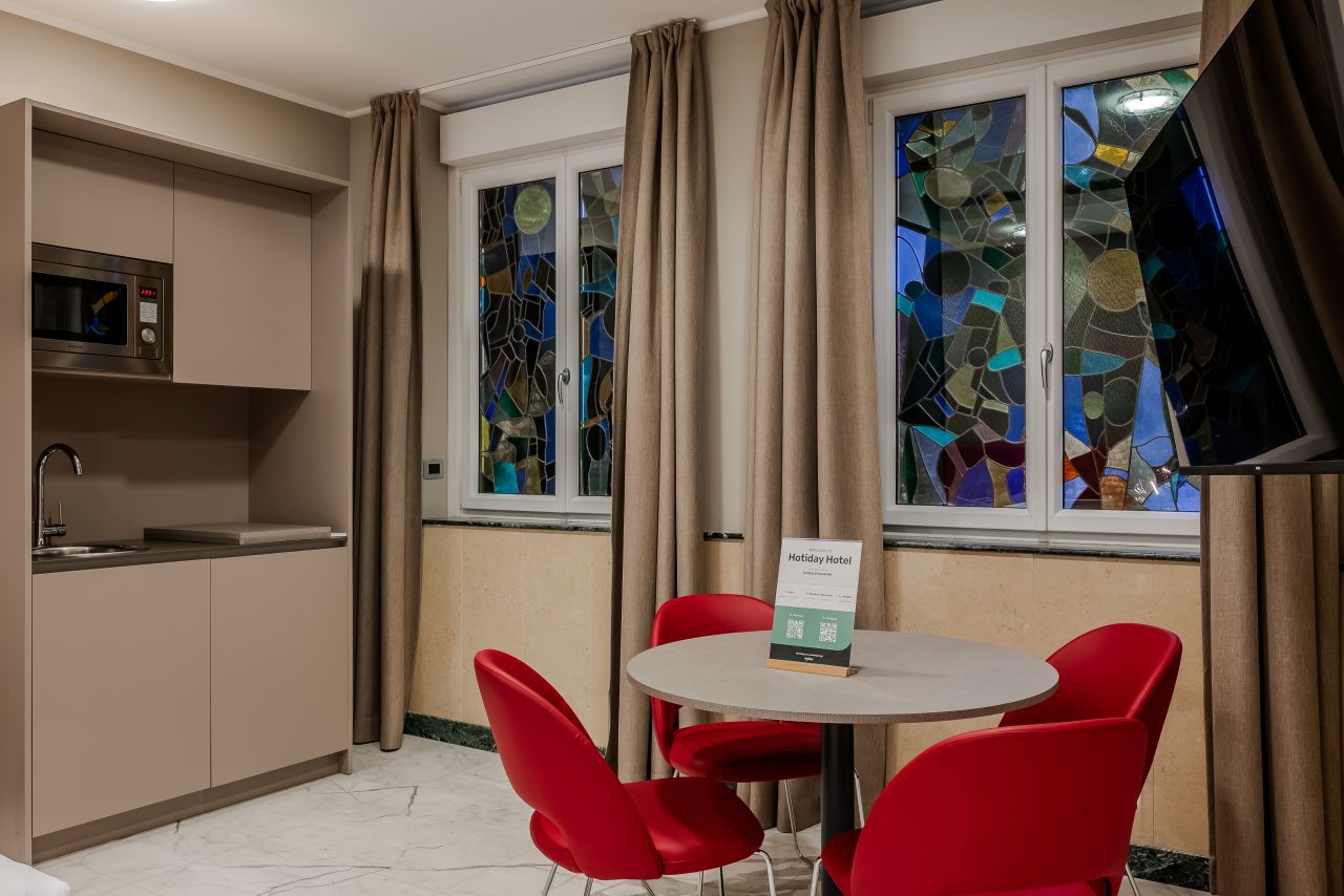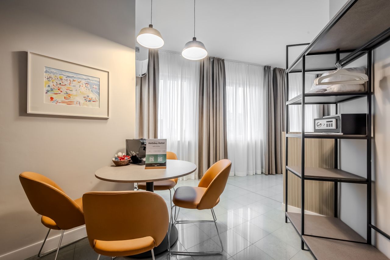 Hotiday Aparments La Speziaè una raffinata selezione di camere e appartamenti completamente attrezzati, situata all’interno di un accogliente hotel 3 stelle. Ogni soluzione è pensata per offrirti il massimo del comfort, con ambienti moderni, cucina attrezzata, Wi-Fi gratuito e spazi curati nei minimi dettagli. A tua disposizione anche una splendida terrazza panoramica, da cui ammirare tramonti mozzafiato. Che tu sia in viaggio per relax, lavoro o avventura, qui troverai l’atmosfera perfetta per sentirti davvero in vacanza.Scopri il piacere di un soggiorno che unisce comfort, stile e una vista da sogno!Sistemazioni