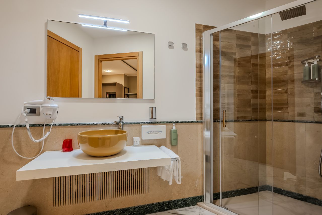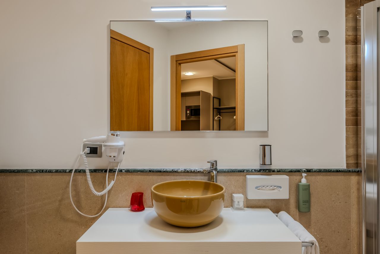 Gli appartamenti si distinguono in: bilocale e monolocale e dispongono di angolo cottura, aria condizionata/riscaldamento, Tv Smart, bollitore, cassaforte, minibar, linea di cortesia e doccia.Amici a 4 Zampe