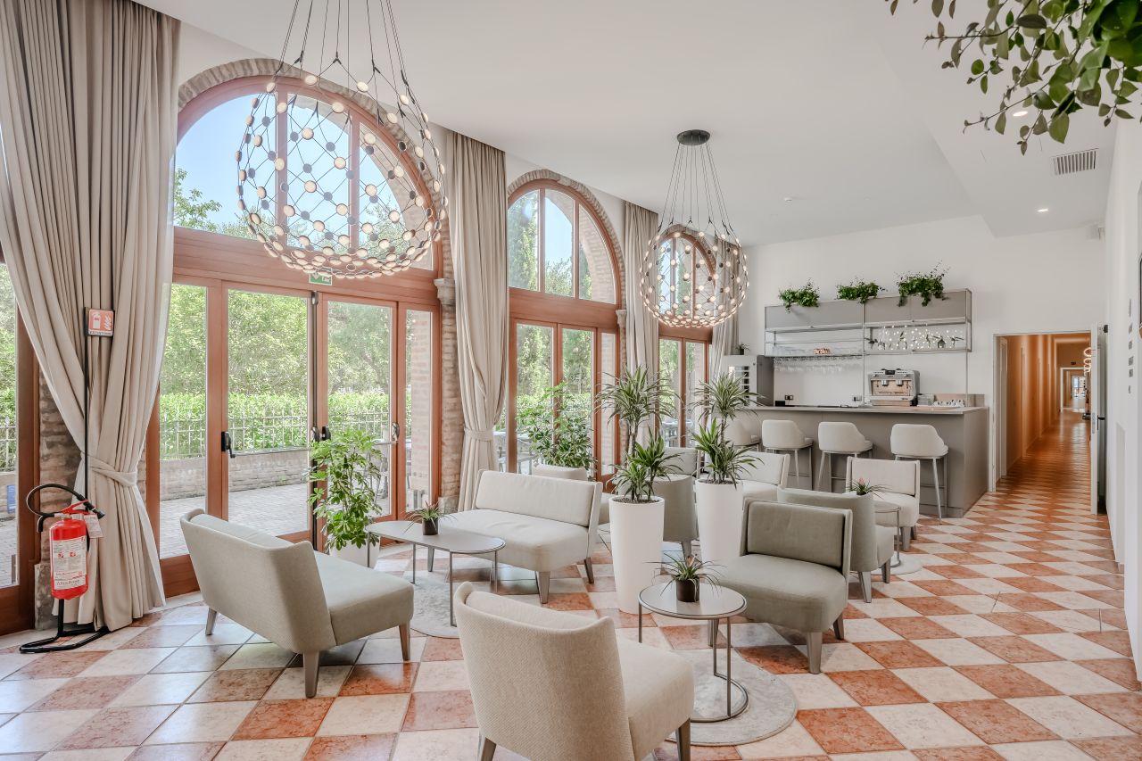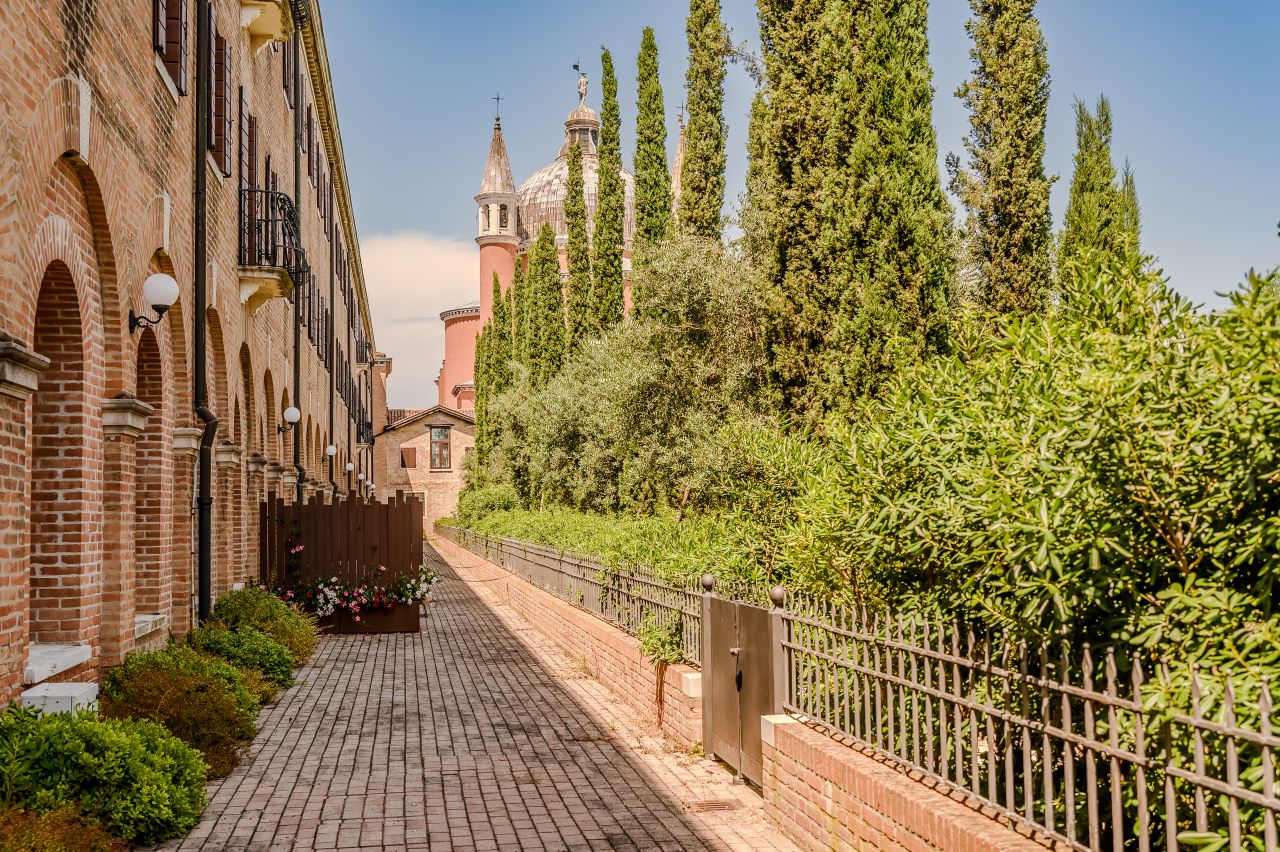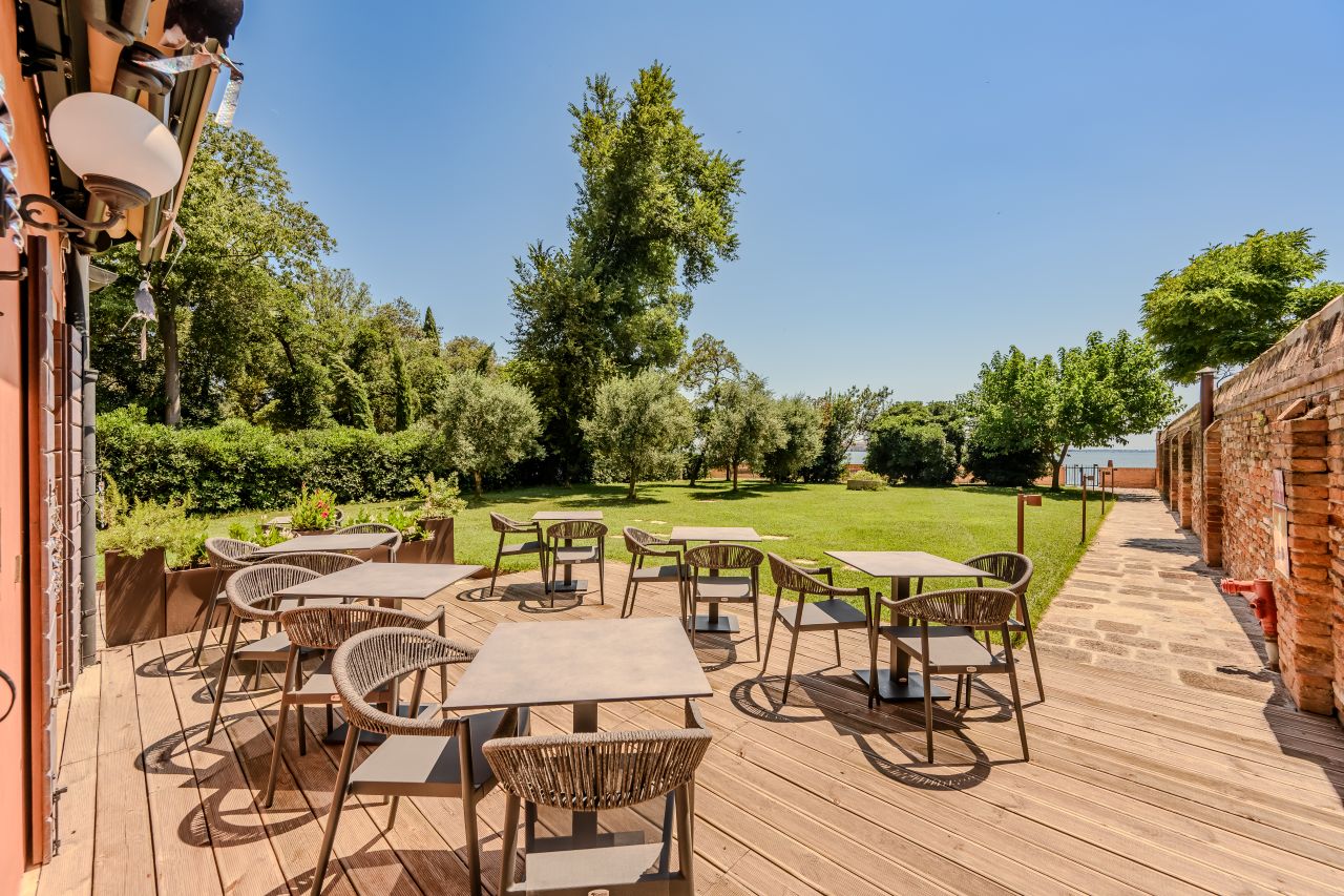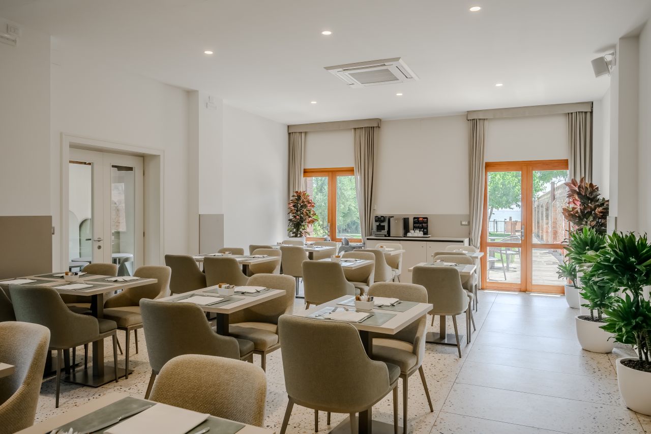 Le camere, situate al primo e secondo piano sono 28, mentre al piano terra se ne trovano altre 7, tutte dotate di bagno privato con doccia e di un’accogliente zona soggiorno. Ogni stanza offre una vista esclusiva sugli orti e i giardini del convento ed è arredata con grande cura, combinando il comfort moderno con l’atmosfera tipicamente veneziana. I pavimenti sono realizzati in moderno seminato veneziano, mentre i bagni si distinguono per eleganza e attenzione ai dettagli. I materiali utilizzati si armonizzano con gli arredi, che includono un comodo letto matrimoniale, una scrivania, un divano dalle linee classiche ma contemporanee e armadi dal design moderno ed essenziale. Queste camere non sono semplici “punti di appoggio”, ma veri e propri spazi da vivere, che diventano parte fondamentale dell’esperienza del soggiorno.Amici a 4 Zampe
