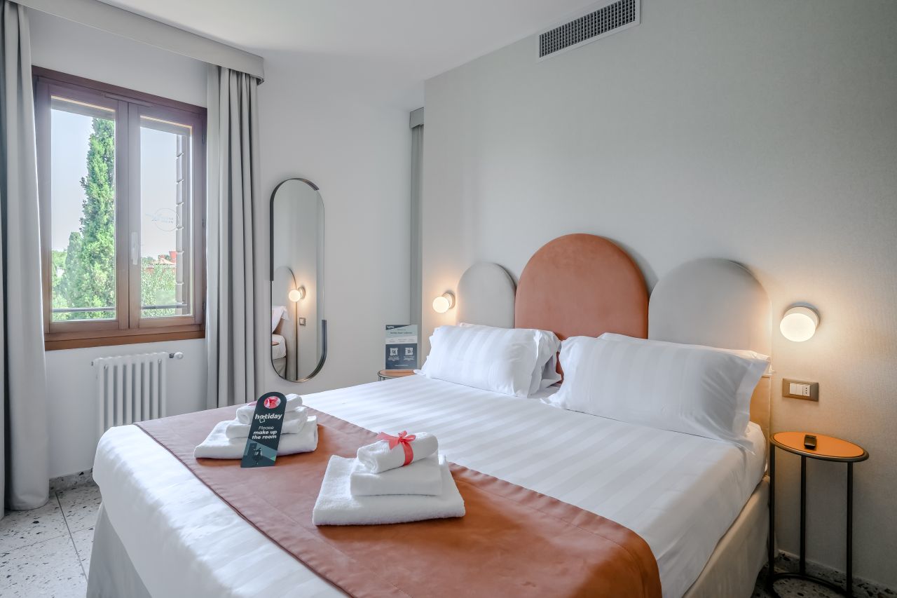Hotiday Room Collection Venezia Cape è un elegante boutique hotel situato nel cuore di Venezia, a pochi passi dalla famosa Basilica del Redentore. Questa struttura esclusiva unisce il fascino storico veneziano con comfort moderni, offrendo un soggiorno intimo e raffinato. Le camere sono arredate con gusto, combinando elementi classici con dettagli contemporanei, creando un’atmosfera calda e accogliente. Ogni stanza offre viste suggestive sui canali o sui cortili interni, garantendo privacy e tranquillità. Hotiday room collection Venezia Cape è la scelta perfetta per chi desidera vivere Venezia con stile, in una location centrale ma riservata, ideale sia per una fuga romantica sia per un viaggio culturale.Sistemazioni