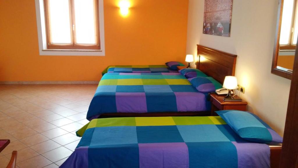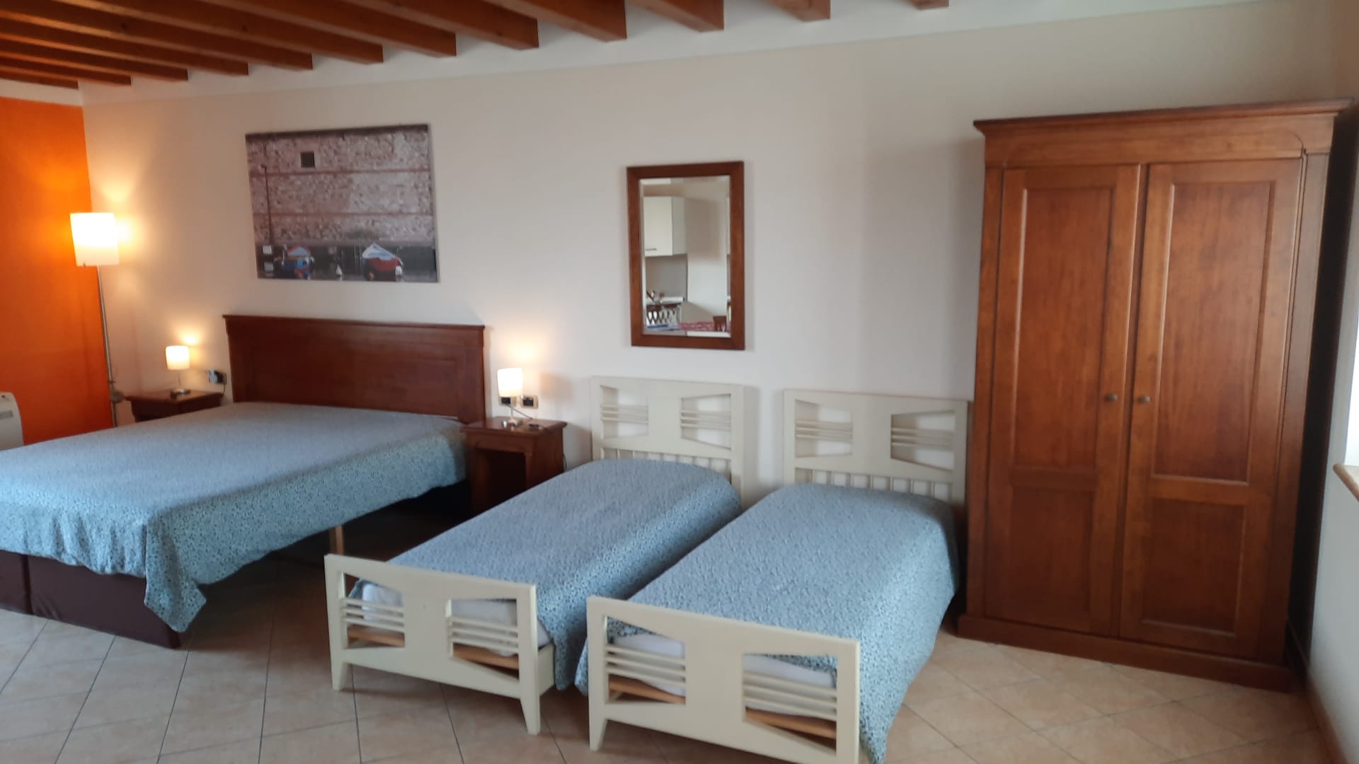 D2 Doppia: 14-23mq. Servizi inclusi: Riscaldamento a pavimento, Climatizzatore, Mini-frigorifero, TV con digitale terrestre, Asciugacapelli, Tavolo/scrittoio con sedie, Prodotti da bagno, Bagno privato con doccia, Pavimento in mattonelle/marmo T3 Tripla: 22-26mq. Servizi inclusi: Riscaldamento a pavimento, Climatizzatore, Mini-frigorifero, TV con digitale terrestre, Asciugacapelli, Tavolo/scrittoio con sedie, Prodotti da bagno, Bagno privato con doccia, Pavimento in mattonelle/marmo Q4 Quadrupla: 23-26mq. Servizi inclusi: Riscaldamento a pavimento, Climatizzatore, Mini-frigorifero, TV con digitale terrestre, Asciugacapelli, Tavolo/scrittoio con sedie, Prodotti da bagno, Bagno privato con doccia, Pavimento in mattonelle/marmo La camera doppia può essere anche mansardata, il punto più basso è alto 2mt (della zona abitabile e da usufruire)
