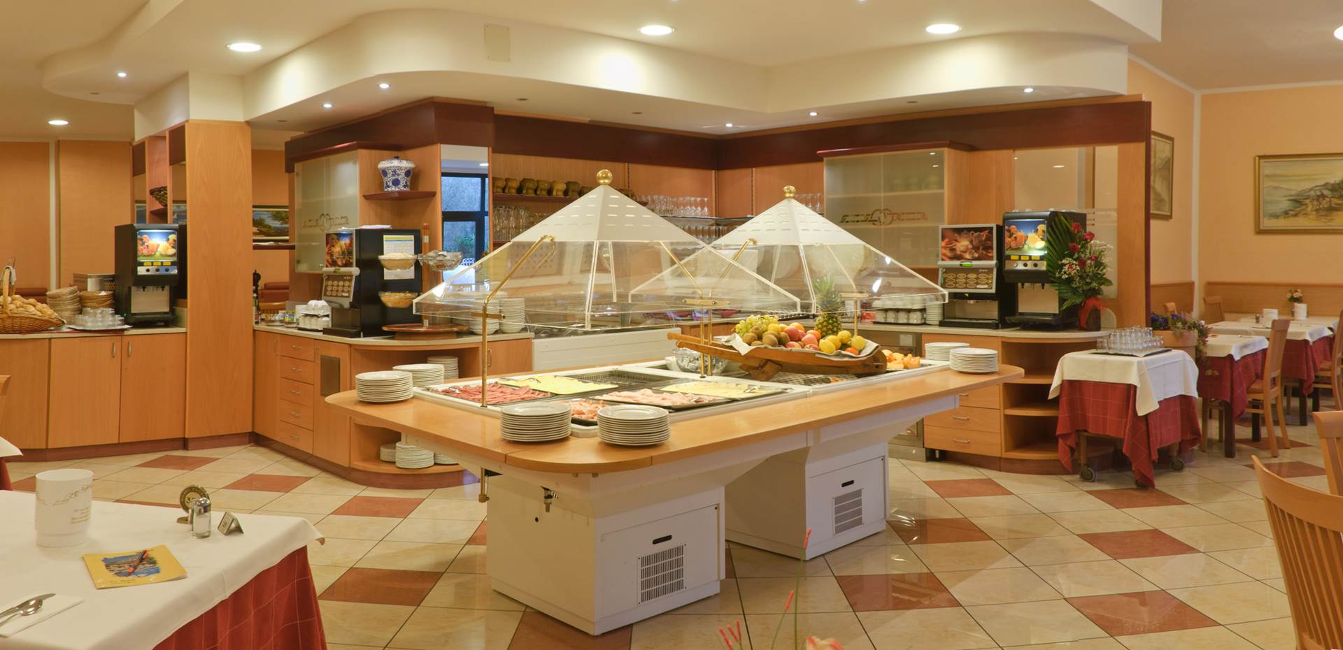 Per chi prenota la mezza pensione: cena di 3 portate con scelta di menu. Scelta tra 3 primi e 3 secondi. Dessert: scelta tra dolce/frutta, gelato o formaggio. Buffet di insalate