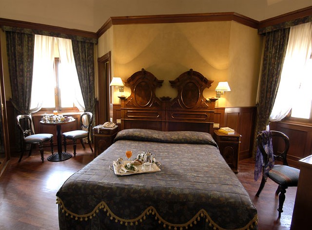 Junior Suite: dispone di vasca idromassaggio jacuzzi, mentre le doppie deluxe entrambe affrescate dispongono di cabina doccia idromassaggio.