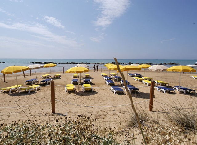 Spiaggia riservata dotata di ombrelloni e lettini a 300 metri;