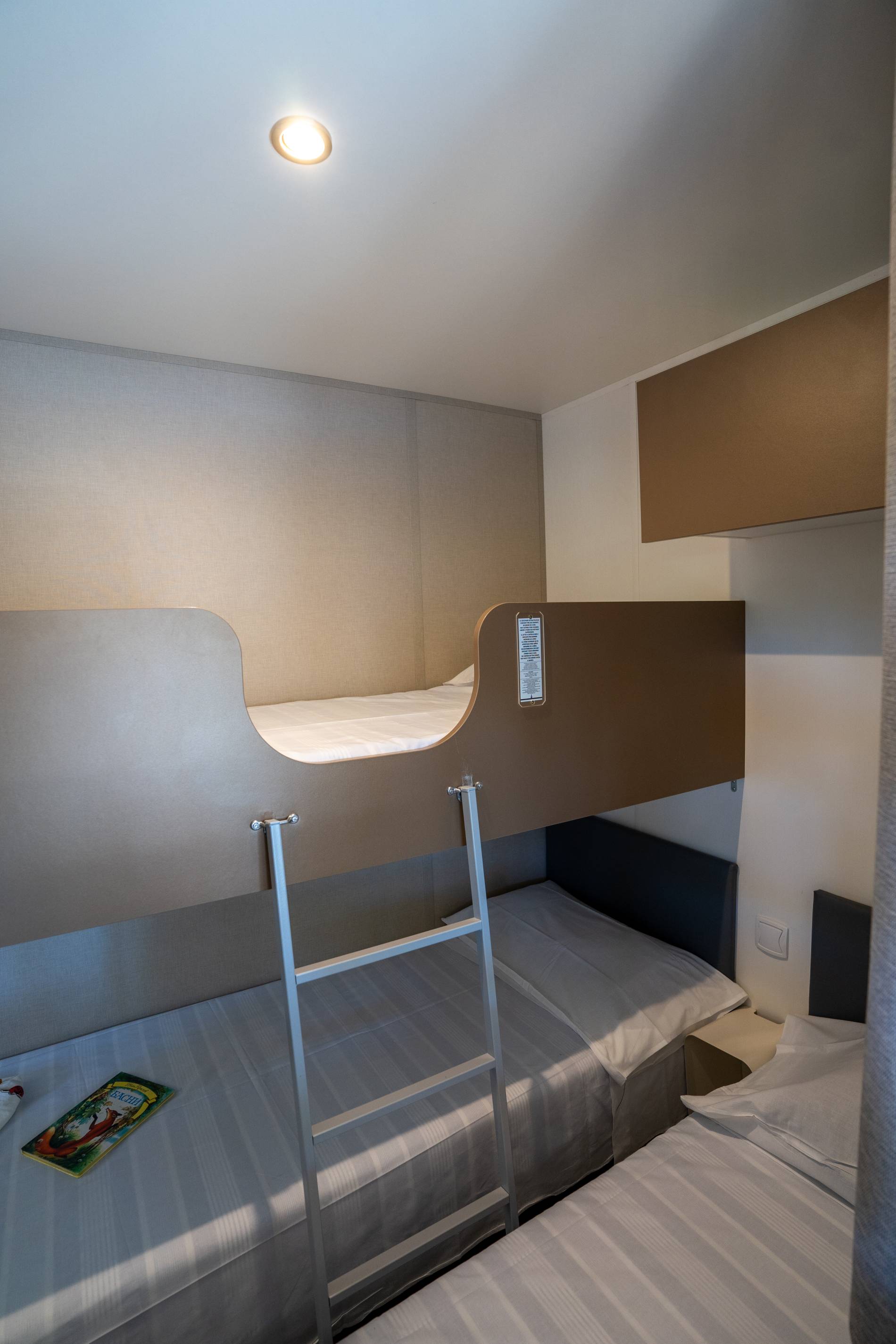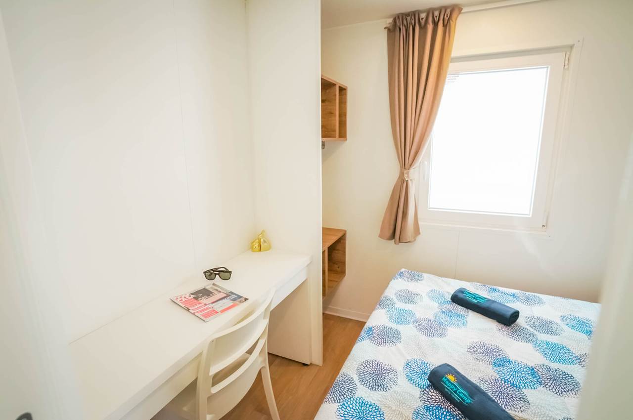 MH HAPPY PREMIUM : 29mq capienza per 6 adulti , composta da 1 camera matrimoniale ( 190x 140 cm) + 2 camere da letto con letti separati ( 190x70 cm); bagno completo di doccia, lavandino e wc.