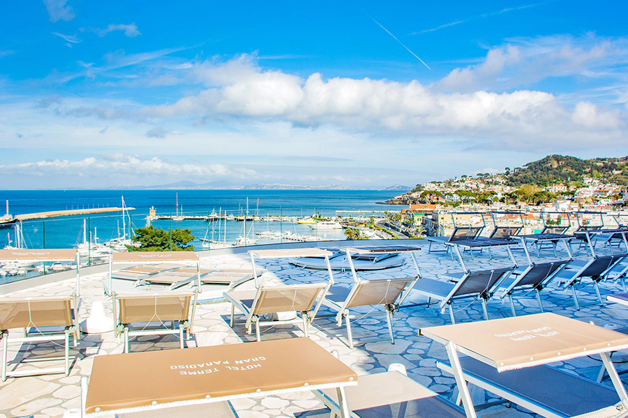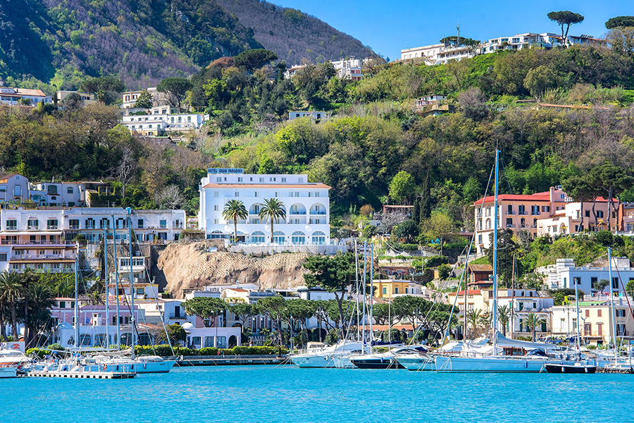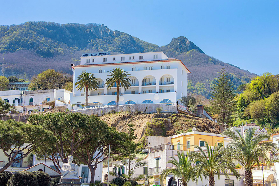L’Hotel Terme Gran Paradiso è una dimora dal fascino mediterraneo che regala viste mozzafiato e momenti di autentico relax. Situato a soli 300 metri dal porto turistico e dal centro storico di Casamicciola Terme, l’hotel vanta una posizione privilegiata che unisce tranquillità e comodità. Completamente rinnovato nel 2018, il Gran Paradiso accoglie i suoi ospiti in ambienti eleganti e luminosi, dove il bianco e i toni naturali si fondono con i colori e i profumi dell’isola. La terrazza dell'hotel  Tutte le camere dispongono di aria condizionata centralizzata, minibar, WIFI, TV Lcd, Telefono, cassaforte, asciugacapelli. La struttura dispone di un centro termale con piscina calda coperta, sulla terrazza due vasche idromassaggio Jacuzzi con acqua calda sorgiva e una piscina con acqua sorgiva a temperatura ambiente, american bar. La ristorazione è ispirata alla cucina mediterranea, servita nell'ampia ed elegante sala.