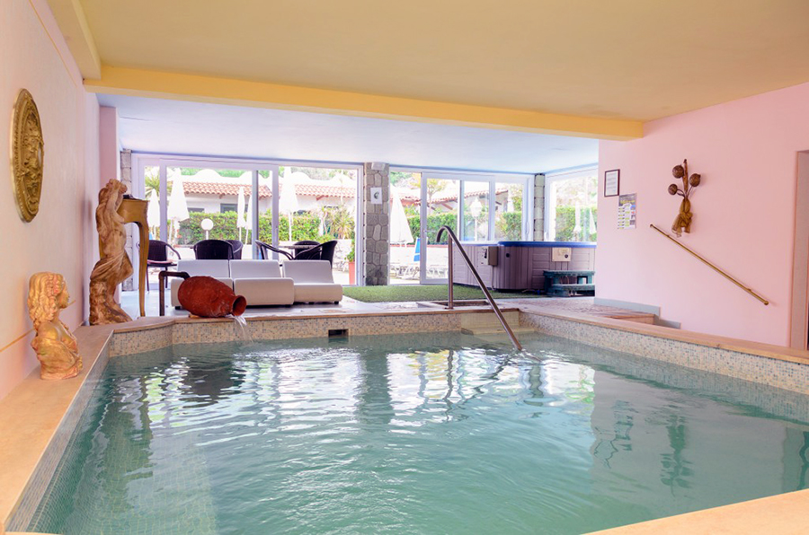 L'utilizzo della piscina esterna e di quella interna, giardino con solarium attrezzato, salottino interno e pateo esternoLa quota non comprende