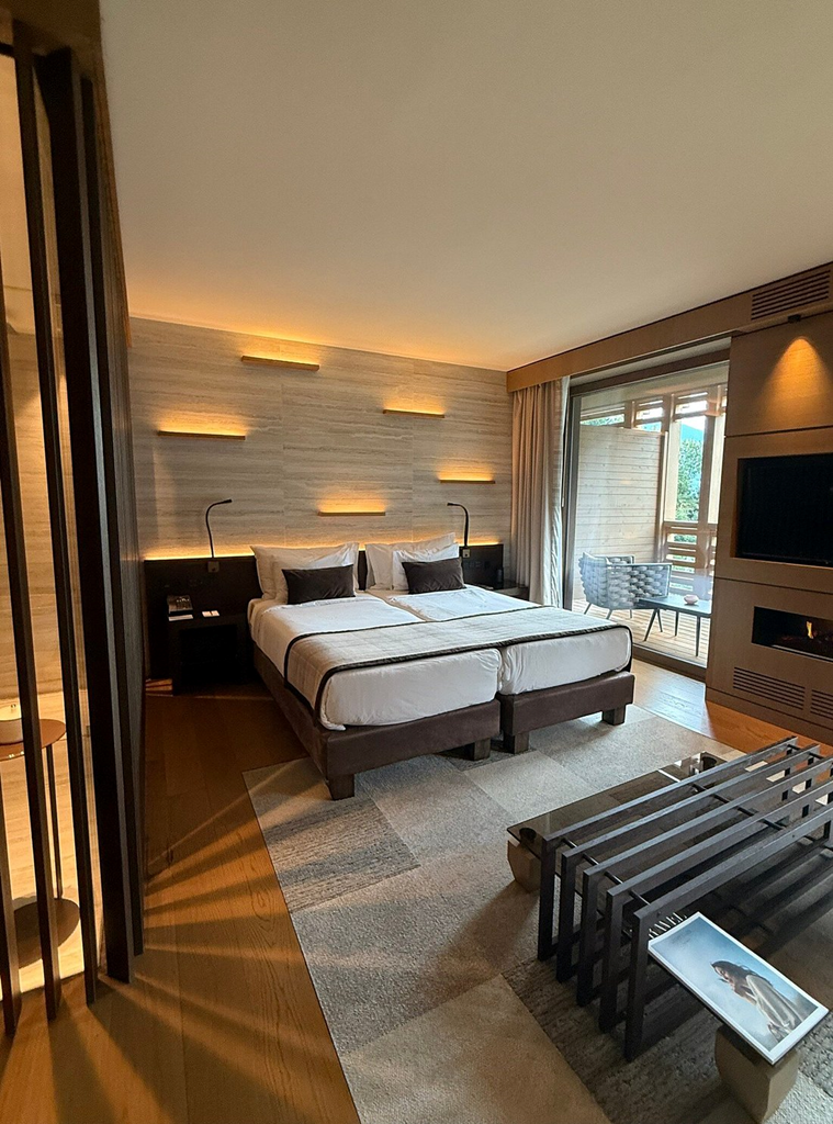 Le camere del Lefay Resort & SPA Dolomiti sono progettate per offrire il massimo del comfort e del lusso, integrandosi perfettamente con l’ambiente naturale circostante. Ogni camera è spaziosa e accogliente, con arredi eleganti che combinano materiali naturali e tecnologie moderne. Le suite sono dotate di letti king-size, ampi bagni con doccia e vasca separata, e viste panoramiche sulle Dolomiti. La qualità dell’aria e la luce naturale sono ottimizzate grazie a un’attenta progettazione architettonica che sfrutta al massimo la luce solare.La quota comprende