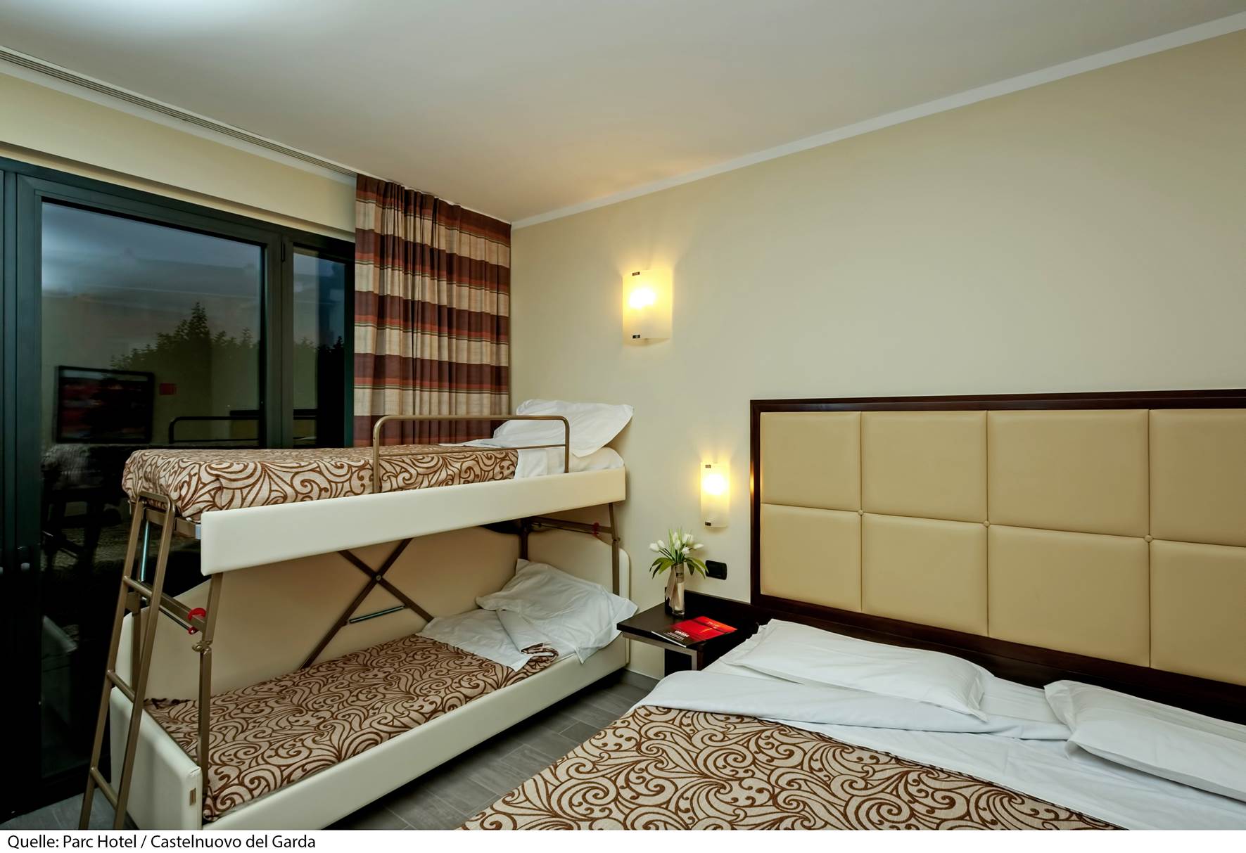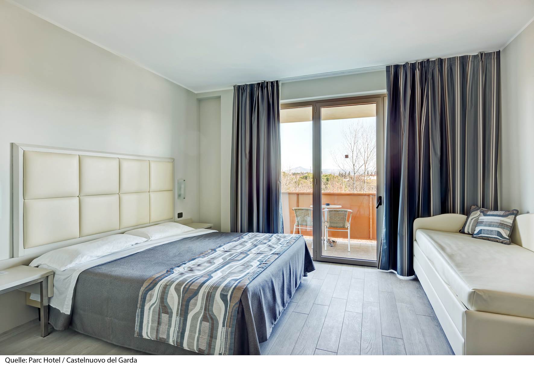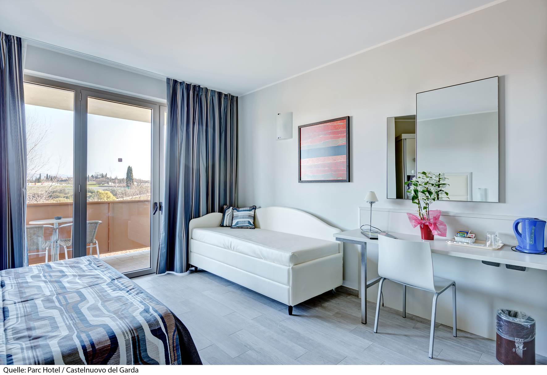 Il Parc Hotel 4* si trova a 2 km dal centro di Peschiera del Garda. Sorge in posizione strategica tra Verona e il Lago di Garda ed è il punto di partenza ideale per numerose località circostanti ricche di ville, castelli e vigneti. La stazione ferroviaria dista 2 km, l'aeroporto di Verona 31 km ed a soli 5 km, nel comune di Castelnuovo del Garda, si trova il parco divertimenti n° 1 in Italia, Gardaland. La struttura dispone di reception, bar, ristorante, palestra (gratuita), campo da tennis (a pagamento), campo da golf (a pagamento), biliardo e calcio balilla (gratuiti, dal 10/06/26 al 31/08/26), deposito biciclette non custodito, noleggio biciclette (a pagamento), servizio navetta da/per il Lungolago Mazzini a Peschiera (gratuito, da marzo ad ottobre), Junior Club (gratuito, da 12 a 16 anni, dal 10/06/26 al 31/08/26), Mini Club (gratuito, da 4 a 11 anni, dal 10/06/26 al 31/08/26), programma d'animazione serale (dal 10/06/26 al 31/08/26), 1 biglietto per persona per Gardaland (gratuito, solo per soggiorni di minimo 7 notti dal 04/07/26 al 30/08/26), parcheggio (gratuito, secondo disponibilità), garage (gratuito, secondo disponibilità) e Wi-Fi (gratuito). Le camere dispongono di balcone o patio, servizi privati, aria condizionata (gratuita), riscaldamento, cassaforte (gratuita), asciugacapelli, minibar (a pagamento), telefono, Tv e Wi-Fi (gratuito). Tutte le camere sono di 18 mq.