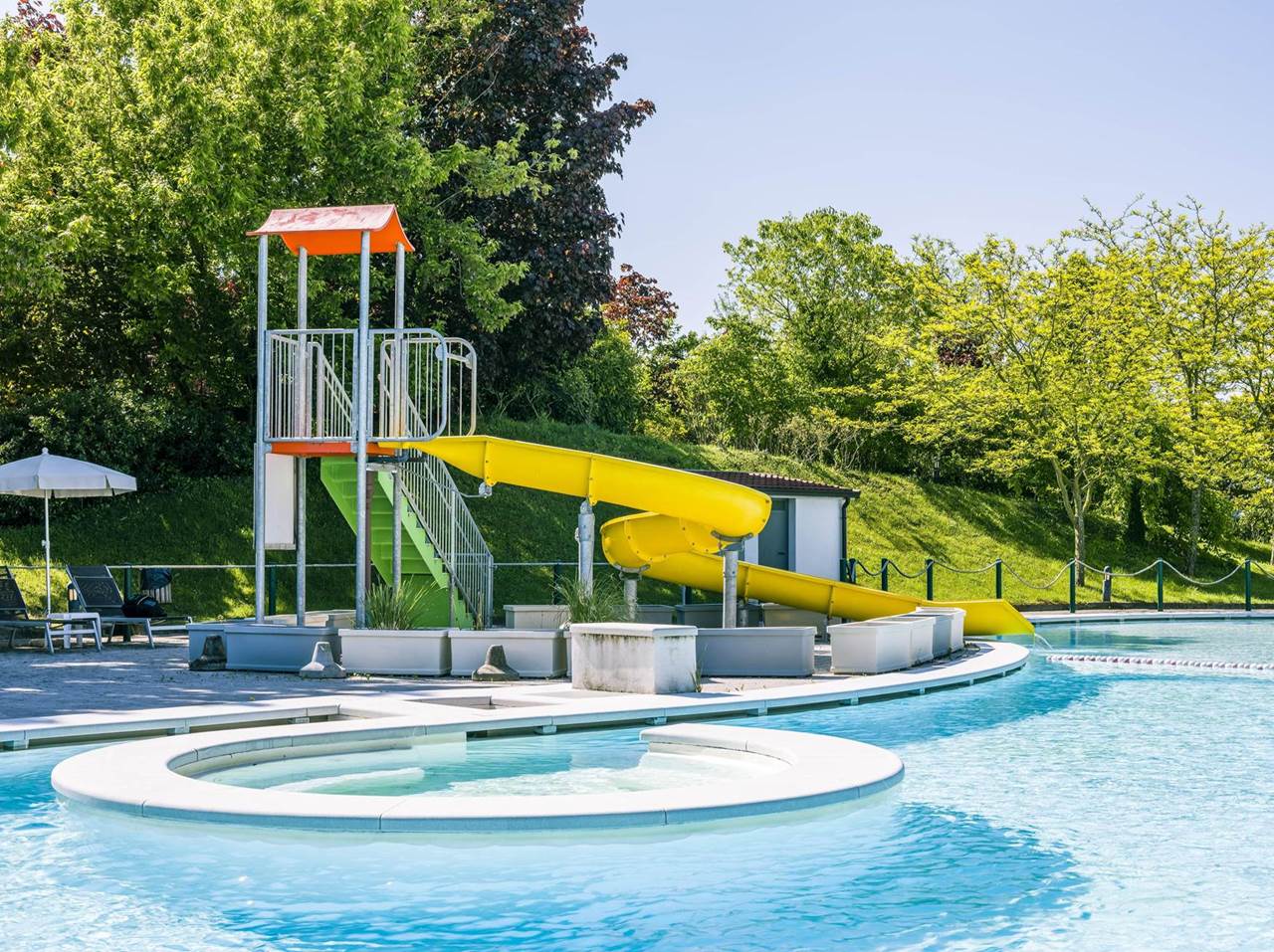 - uso della piscina esterna di 348 mq attrezzata con ombrelloni e sedie a sdraio (apertura stagionale)