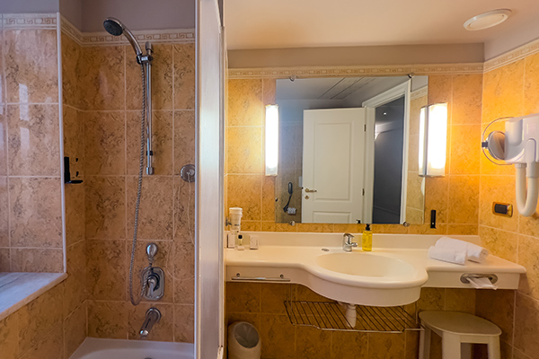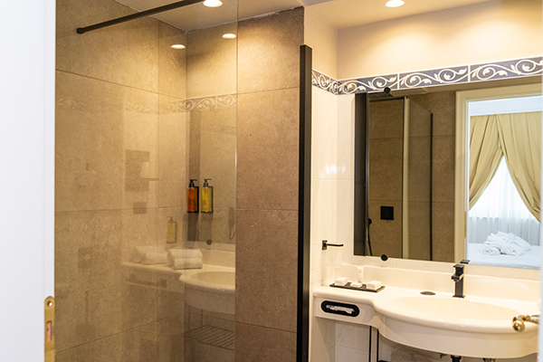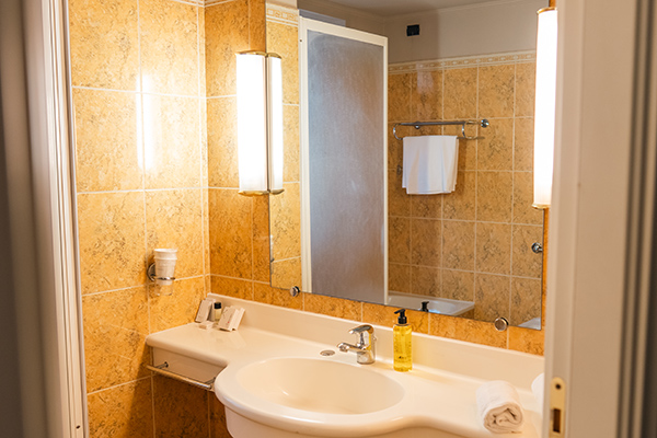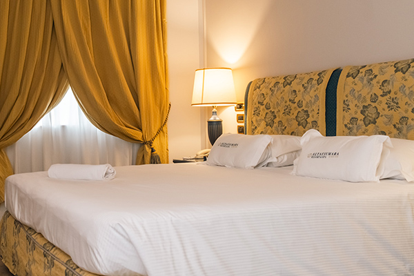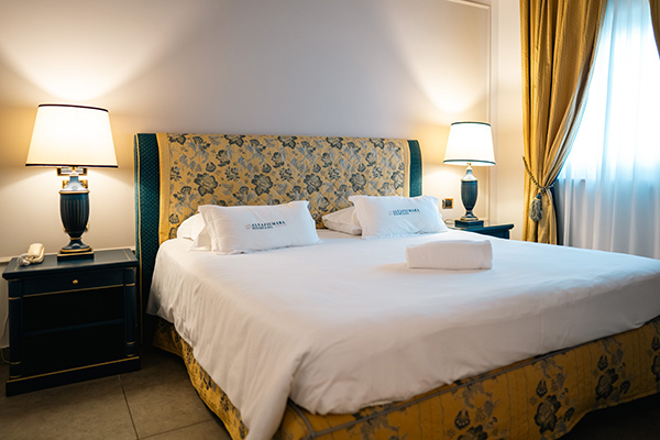 Le camere sono dotate di servizi privati, asciugacapelli, aria condizionata (gratuita), cassaforte (gratuita), minibar (a pagamento), Tv e Wi-Fi (gratuito). Le camere doppie uso singolo edificio Castello e le camere doppie edificio Castello sono di 14 mq, mentre le Camere triple edificio Castello sono di 20 mq.
