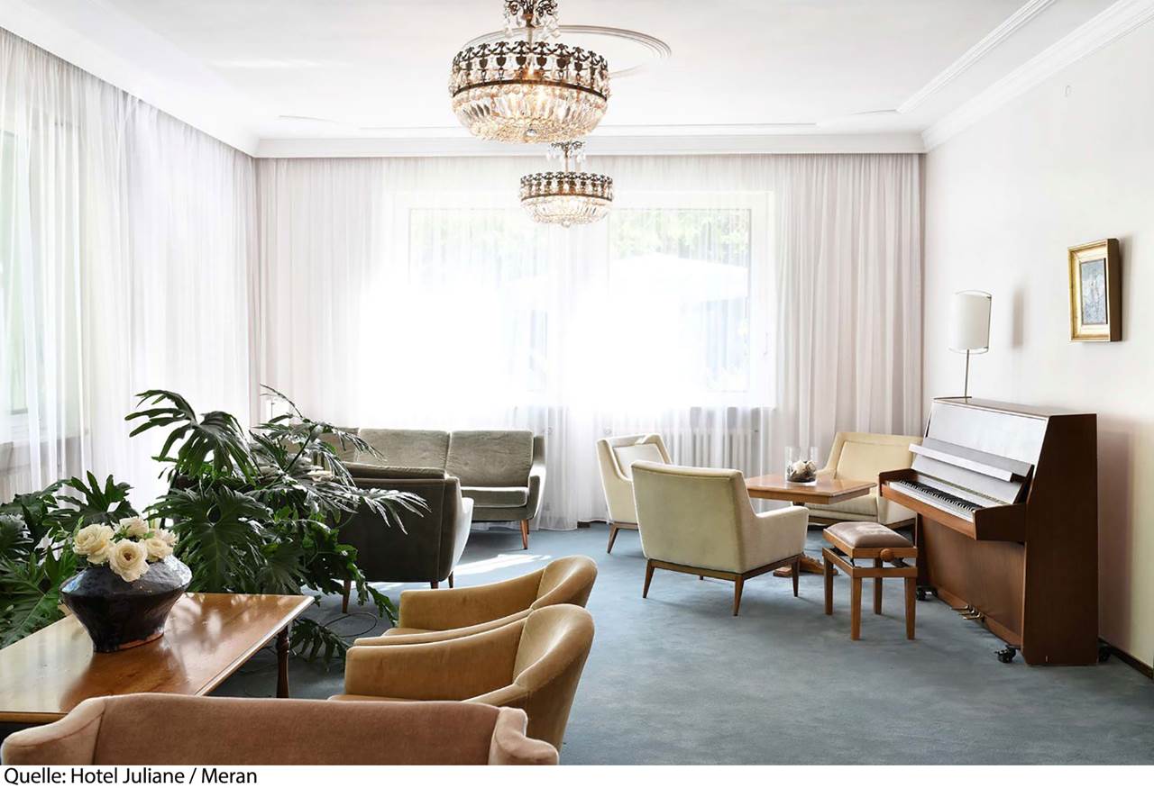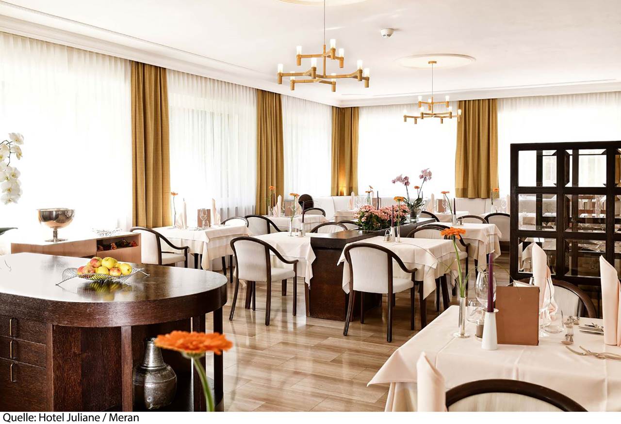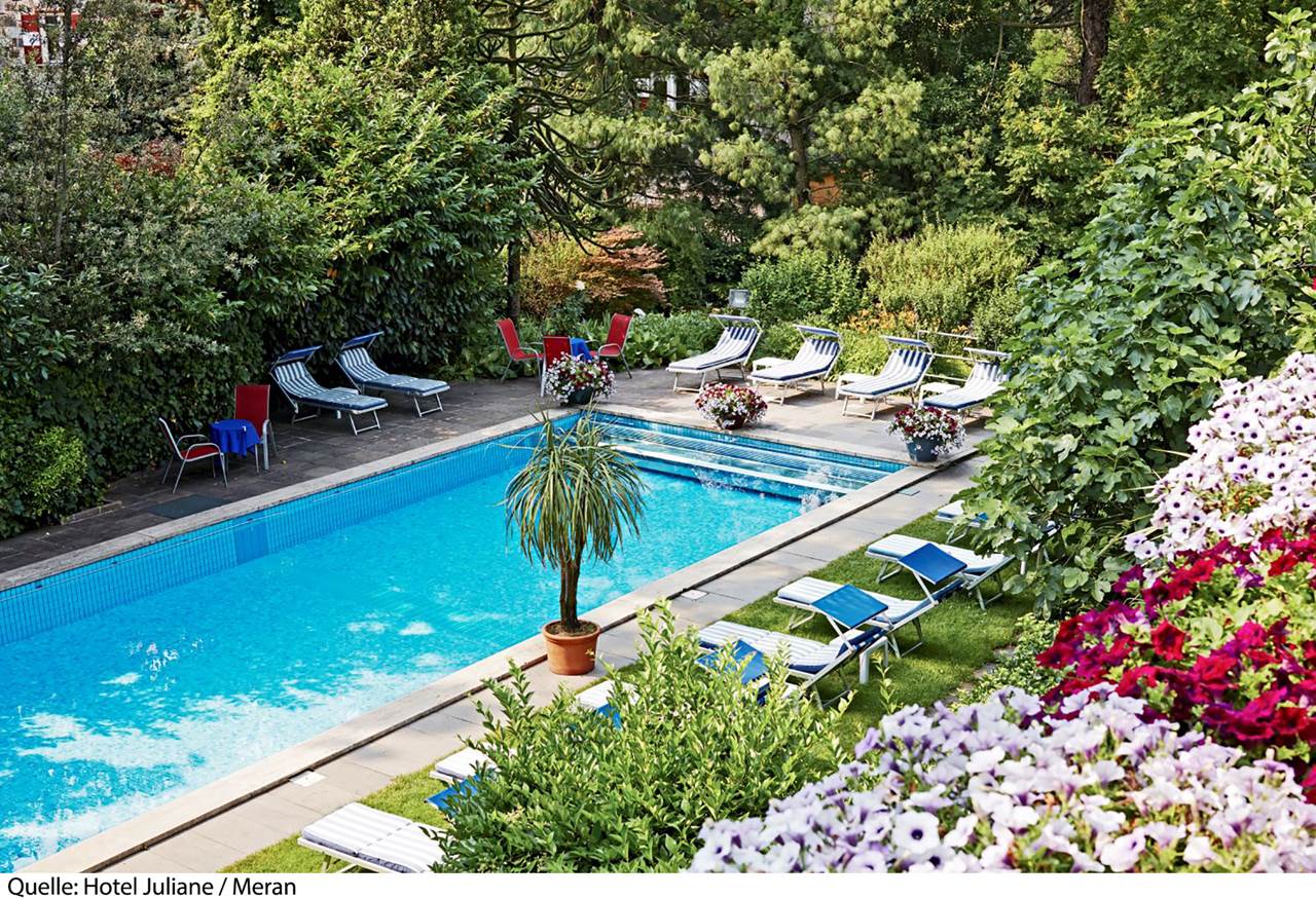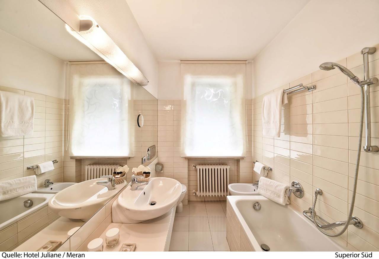 L'Hotel Juliane 4* si trova a Merano, punto di partenza perfetto per visite turistiche, escursioni e tour in bicicletta. Il centro del paese si trova ad 800 m mentre la fermata del bus a 50 m. La stazione treni di Merano dista 2,5 km e l'aeroporto di Verona Valerio Catullo 174 km. La struttura dispone di reception, deposito bagagli, sala lettura, ristorante, bar, terrazza, ping pong (gratuito), noleggio biciclette (gratuito, secondo disponibilità), parcheggio (gratuito, secondo disponibilità) e Wi-Fi (gratuito). Le camere dispongono di balcone, servizi privati, asciugacapelli, aria condizionata (gratuita), riscaldamento, minibar (a pagamento), accappatoio e ciabattine, telefono, Tv e Wi-Fi (gratuito). Le Camere doppie/triple Comfort con balcone est sono di 26 mq.