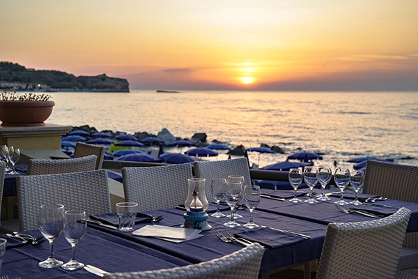 - servizio spiaggia con 1 ombrellone, 1 sedia a sdraio e 1 lettino (a partire dalla 3^ fila, a camera per soggiorno)