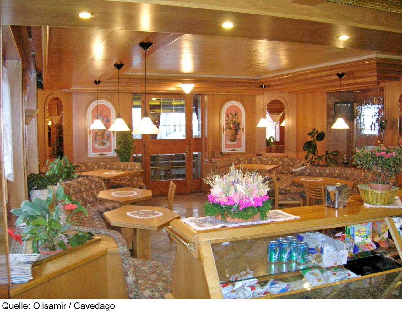 In stile tirolese l'Hotel Olisamir 3* si trova a 500 metri dal centro di Cavedago ed è il punto ideale di partenza per raggiungere gli impianti di risalita di Andalo, a 5 km dalla struttura. La struttura dispone di reception, ascensore, ristorante, bar, terrazza, palestra (gratuita), ping pong (gratuito), calcio balilla (gratuito), parco giochi e sala per i giochi dei bambini, Wi-Fi (gratuito), parcheggio (gratuito, su richiesta). Le camere, tutte di 14 mq, dispongono di servizi privati, asciugacapelli, telefono, Tv, Wi-Fi (gratuito) e cassaforte (gratuita). Le camere quadruple sono dotate di letto a castello.