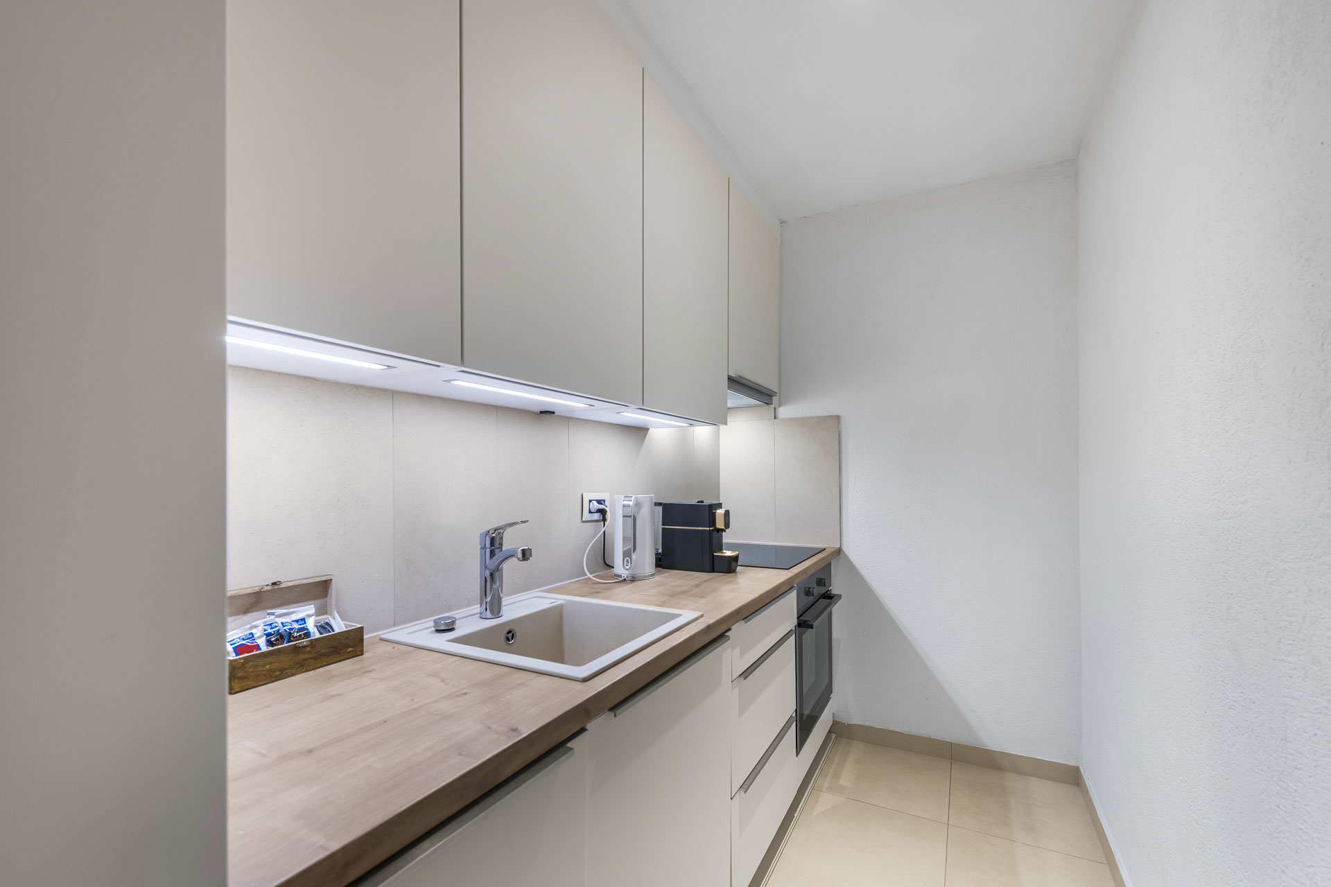 La villa dispone di sette appartamenti: 5 con una camera da letto e 2 con due camere da letto. Appartamento Luxury con 1 camera da letto: ampia zona giorno con divano letto, cucina, camera da letto e bagno con vasca. L'appartamento può ospitare un massimo di 3 persone. Gli spaziosi e luminosi balconi sono il luogo ideale per rilassarsi e godersi la pace e la bellezza del paesaggio. 55 mq. Appartamento Luxury con 2 camere da letto: 2 camere da letto, ampia zona giorno con divano letto, cucina e due bagni con vasca. Oltre alla terrazza a bordo piscina, potrete rilassarvi sul vostro spazioso balcone privato e godervi lunghe e pigre giornate estive, accarezzati dalla brezza. 76 mq. Servizi: aria condizionata, telefono con linea diretta, accesso internet ad alta velocità gratuito, TV LCD a schermo piatto in soggiorno e nelle camere da letto (con canali satellitari), piano cottura elettrico, frigorifero/congelatore, lavastoviglie, set per la preparazione di tè e caffè, stoviglie e posate in vetro, ferro e asse da stiro. Bagno con vasca, specchio ingranditore per il trucco e asciugacapelli, articoli da toeletta di base, accappatoi e pantofole di lusso. Asciugamani e lenzuola forniti.Amici a 4 Zampe