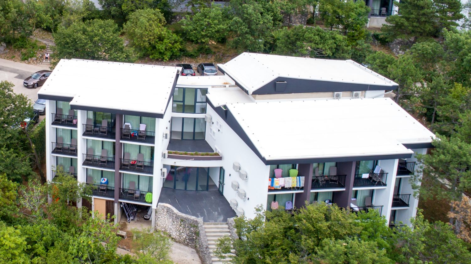 Benvenuti nell'oasi verde situata nel cuore di una rigogliosa pineta e della profumata macchia mediterranea. Composto da un hotel e da 12 edifici arredati in maniera confortevole e moderna, il resort Ad Turres è il luogo ideale per la vostra vacanza in famiglia, sia che vogliate rilassarvi, sia che vogliate trascorrere delle vacanze attive. Inizia le tue giornate con una colazione a buffet nel ristorante del Resort. Gli amanti dello sport e delle attività all'aperto nelle immediate vicinanze avranno a disposizione numerosi campi sportivi, come i campi da tennis e da calcio a 5, il minigolf e il ping-pong, e il parco adrenalinico, mentre gli appassionati delle attività acquatiche potranno divertirsi sulla vicina spiaggia di ciottoli bagnata da un mare cristallino. Nell’ambito del ristorante centrale c’è anche una piscina esterna, perfetta per rilassarsi dopo un pranzo delizioso. D’estate, di fronte all’hotel Omorika potrete prendere il trenino turistico che vi porterà nel centro di Crikvenica (Cirquenizza).Sistemazioni