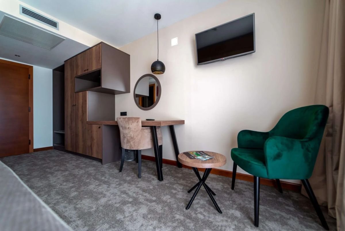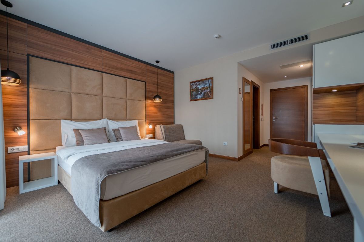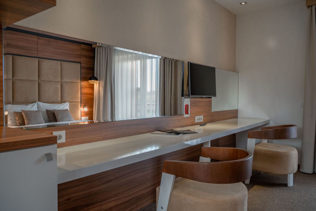L'hotel dispone di 58 camere eleganti e di alta qualità e 4 nuovi appartamenti/suite con una categoria di 4 stelle. Le Camere Doppie Deluxe offrono solo il massimo comfort e qualità. Le camere sono molto spaziose, ognuna è dotata di un letto matrimoniale king size (180 cm) o letti separati per 2 persone. Ogni camera ha accesso a un balcone privato con vista sul prato e sulla natura dall'hotel.Amici a 4 Zampe