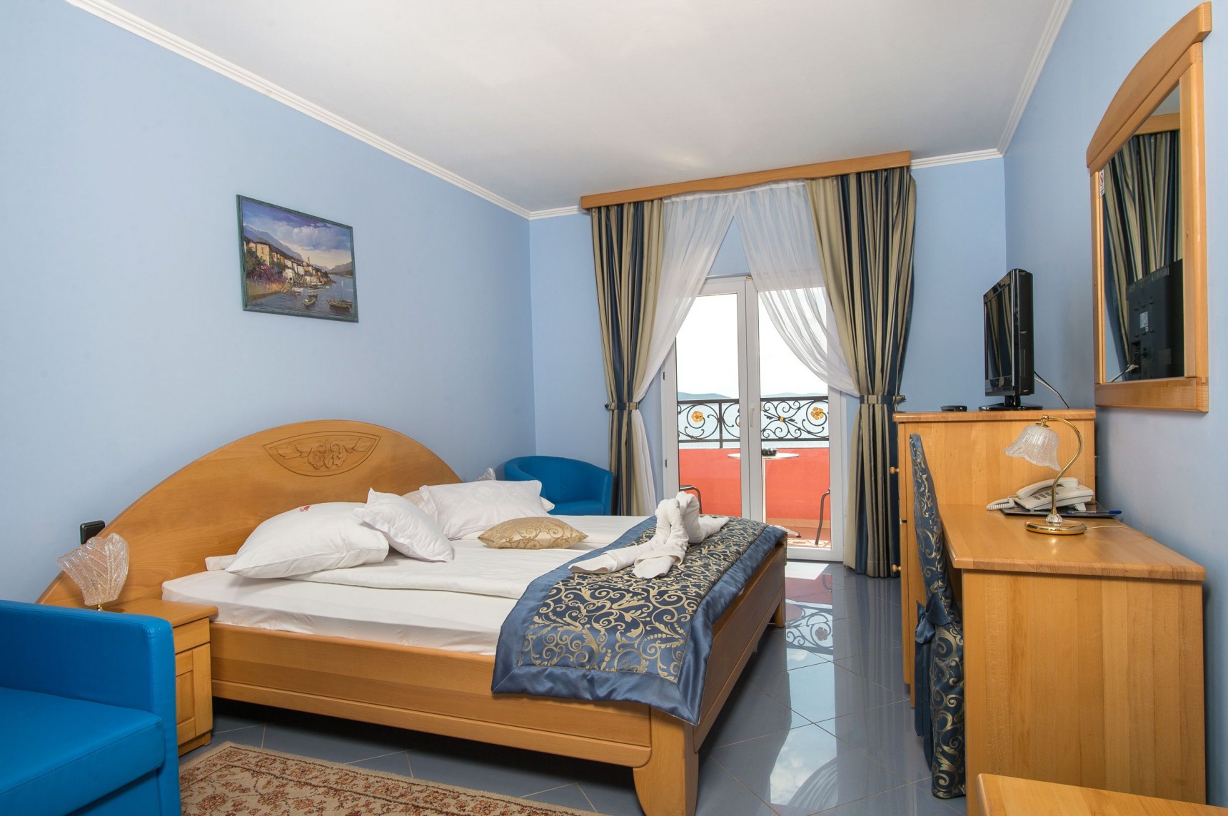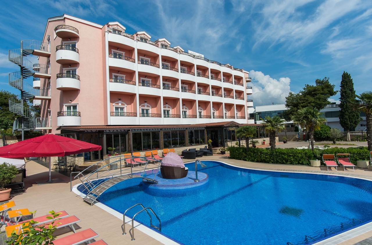 Situato a est del centro della famosa destinazione turistica di Vodice, l'Hotel Miramare vi conquisterà con la sua posizione fronte mare, nonché con la sua eleganza e il suo fascino. In dieci minuti a piedi raggiungerete il centro di Vodice, dove troverete tutto il necessario per una vacanza indimenticabile. Vodice si trova sulla costa adriatica, 11 km a nord-ovest di Sebenico, capoluogo della Contea di Sebenico e Tenin. Un'autostrada vicina e due aeroporti, uno a Spalato e l'altro a Zara, vi porteranno in pochissimo tempo alla vostra destinazione, l'Hotel Miramare di Vodice. L'Hotel Miramare, quattro stelle, offre sistemazione in 61 eleganti camere con balcone che si affaccia sulla spiaggia vicino all'hotel o sul parco dell'hotel. La splendida piscina con acqua cristallina è il luogo ideale per trascorrere un pomeriggio o anche un'intera giornata. Rilassatevi comodamente su una sdraio sorseggiando una bibita fresca. Nella splendida atmosfera del ristorante dell'hotel potrete gustare piatti deliziosi e preparati con cura. Il ristorante può ospitare fino a cento persone e offre una ricca colazione a buffet al mattino. La moderna caffetteria dell'hotel vi regalerà momenti di relax pomeridiani gustando caffè italiano di alta qualità, vini, cocktail e altre bevande.Sistemazioni