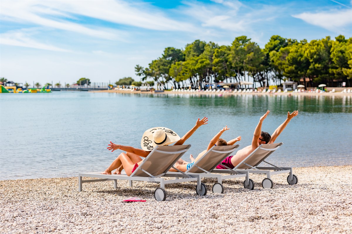 Distanza: 20-50 m Spiaggia di ciottoli (Istrian Villas) Spiaggia di ciottoli nel Resort (Laguna) Spiaggia di sabbia adatta ai bambini (Pinia) Spiaggia pavimentata Lettini sulla spiaggia di Istrian Villas, intorno alla piscina Aqua Chill Out e alla piscina O'Grille (numero limitato) Zone per animali domestici Adattato per persone con disabilità Riconoscimento internazionale "Bandiera blu"Amici a 4 Zampe