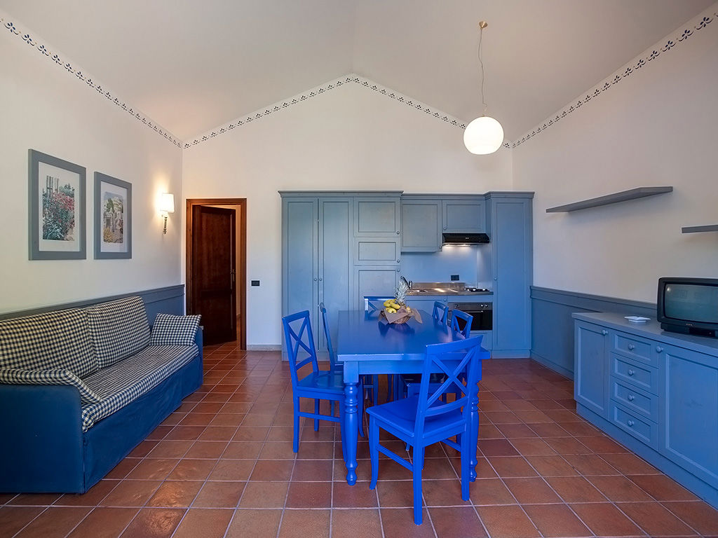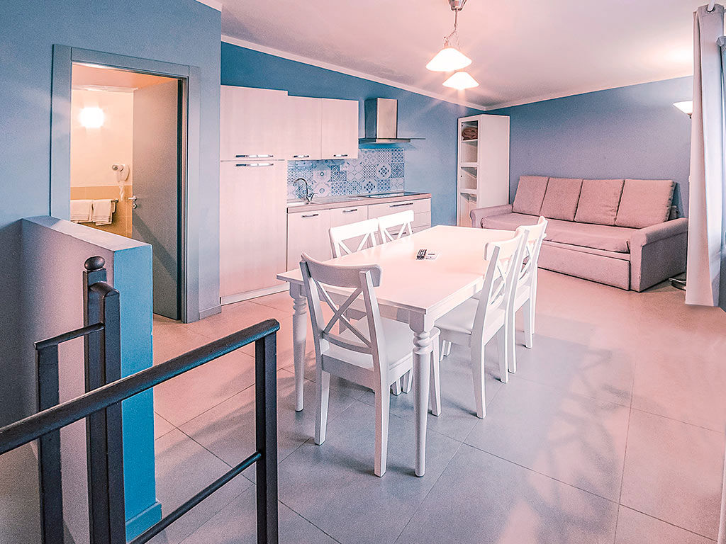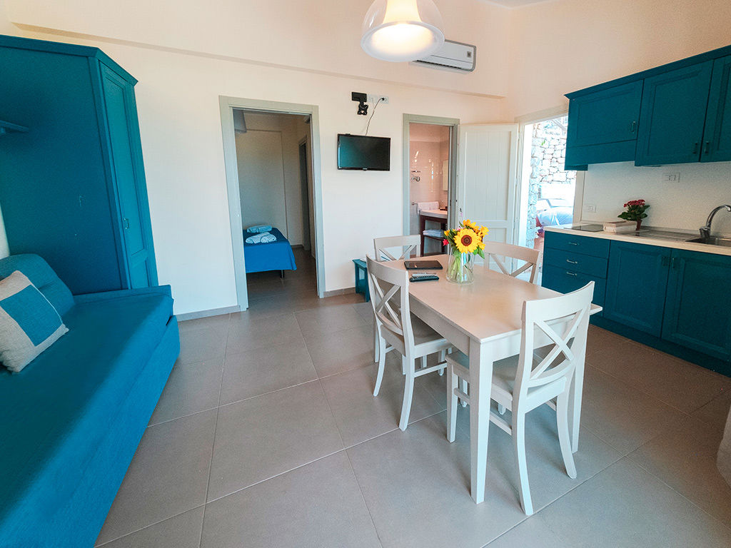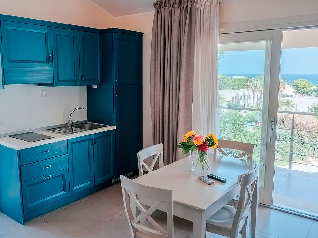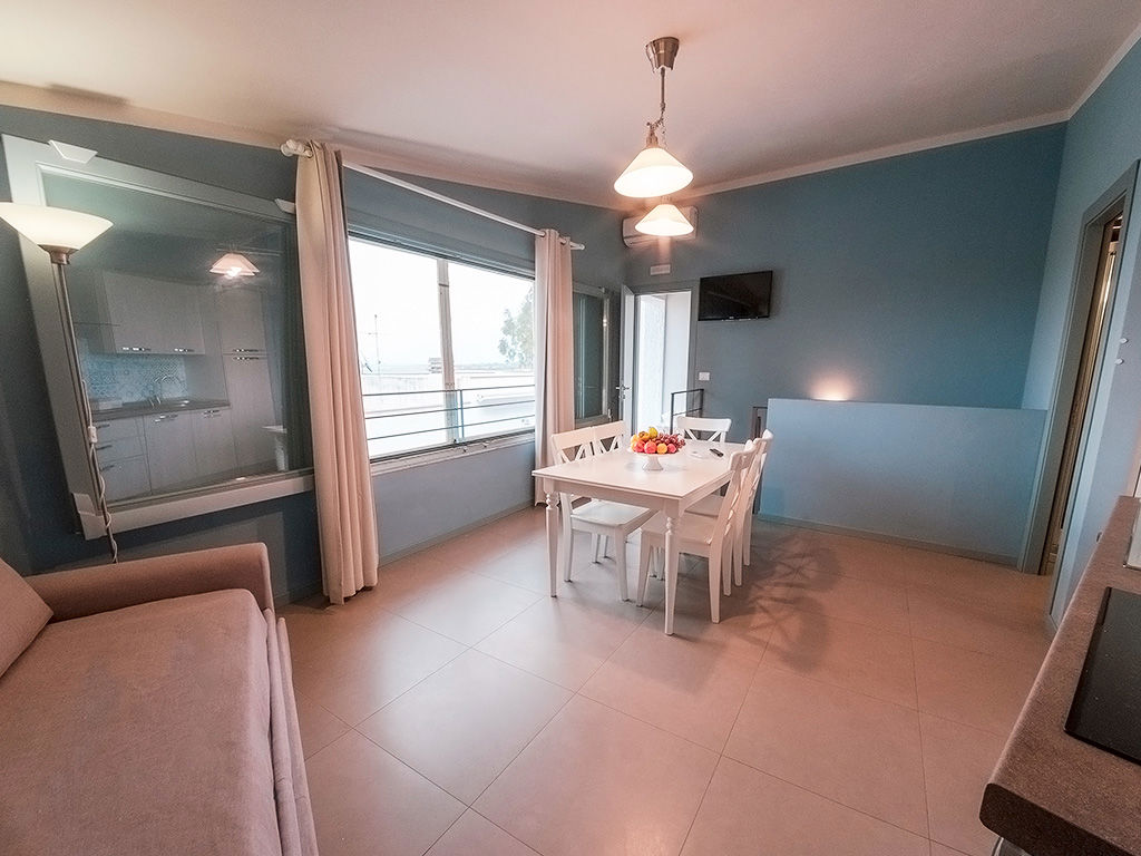 70 apparatmenti, tutti dotati di: angolo cottura attrezzato, stoviglie, pentole, biancheria da letto e da bagno, asciugacapelli, kit di cortesia all’arrivo, wi fi, balcone o veranda, aria condizionata, minibar. Si suddividono in: Monolocali (35 mq ca), unico spazio organizzato con posto letto matrimoniale, angolo cottura e zona pranzo, spazio privato esterno attrezzato con ombrellone, tavolo e sedie; Bilocale (45 mq ca), soggiorno con angolo cottura e divano letto, camera da letto matrimoniale o letti separati, bagno con doccia, spazio privato esterno attrezzato con ombrellone, tavolo e sedie, su richiesta e con supplemento Vista Mare; Bilocale Plus in zona più riservata e panoramica; De Luxe Vista Piscina, con angolo cottura e divano letto, camera da letto matrimoniale o letti separati, bagno con doccia, veranda esterna attrezzata con sdraio, ombrellone, tavolo e sedie; De Luxe Superior, più esclusiva, in zona tranquilla; Trilocale (55 mq ca), ideale per famiglie o gruppi, con angolo cottura e divano letto, camera matrimoniale ed una camera con due letti singoli, servizi privati, area esterna attrezzata.