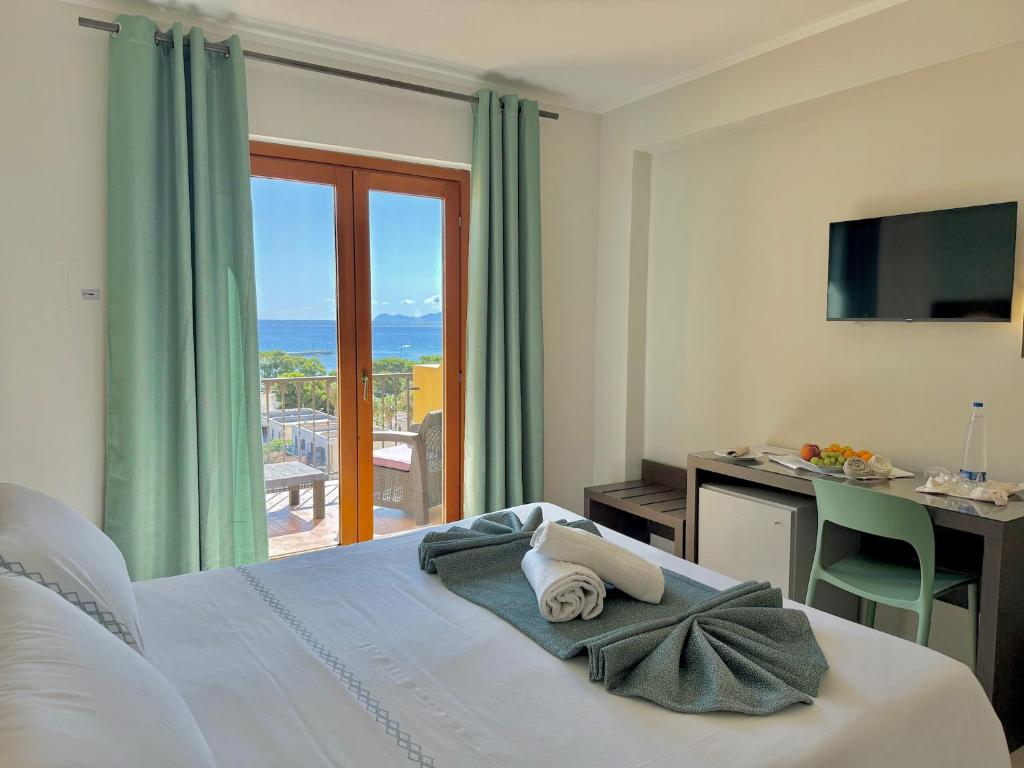 Animali ammessi solo nelle camere Basic e Standard Vista Mare – massimo 10 kg – €30 al giorno (inclusi kit ciotole e pulizia).Culla €10 al giorno, su richiesta; Navetta da/per la spiaggia, spiaggia convenzionata, noleggio teli mare.Da Pagare in Loco