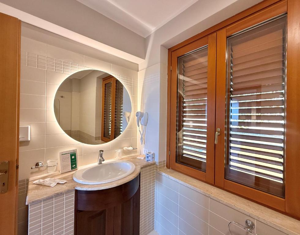 Camere 43, arredate con gusto in stile mediterraneo, tutte con aria condizionata, Wi-Fi gratuito, TV, minibar, cassaforte, telefon. Si suddividono in: basic (max 2 posti), con balconcino o finestra con affaccio sull’ingresso o lati piscina; standard vista mare, con balcone vista panoramica sul mare; Comfort con balcone arredato e vista lato pineta; Comfort vista mare con terrazzino privato attrezzato con tavolino e poltroncine; Suite vista pineta con una camera matrimoniale, soggiorno con divano letto doppio, tavolo e sedie, terrazzino attrezzato con vista sulla pineta; Suite Vista Mare si compone di 2 ambienti: ampio soggiorno con tavolo da pranzo, divano design, smart TV 43 pollici, camera matrimoniale con letto king size, bagno con vasca idromassaggio, due terrazzini di cui uno con vista lato pineta ed uno vista mare attrezzato con poltrone e tavolino.Servizi