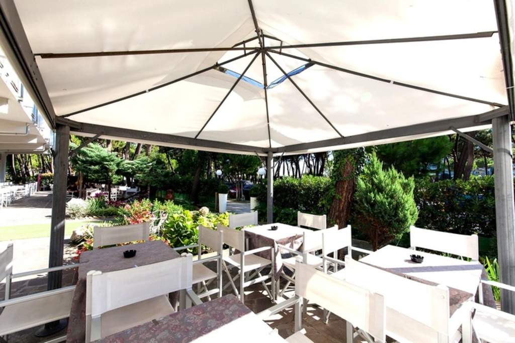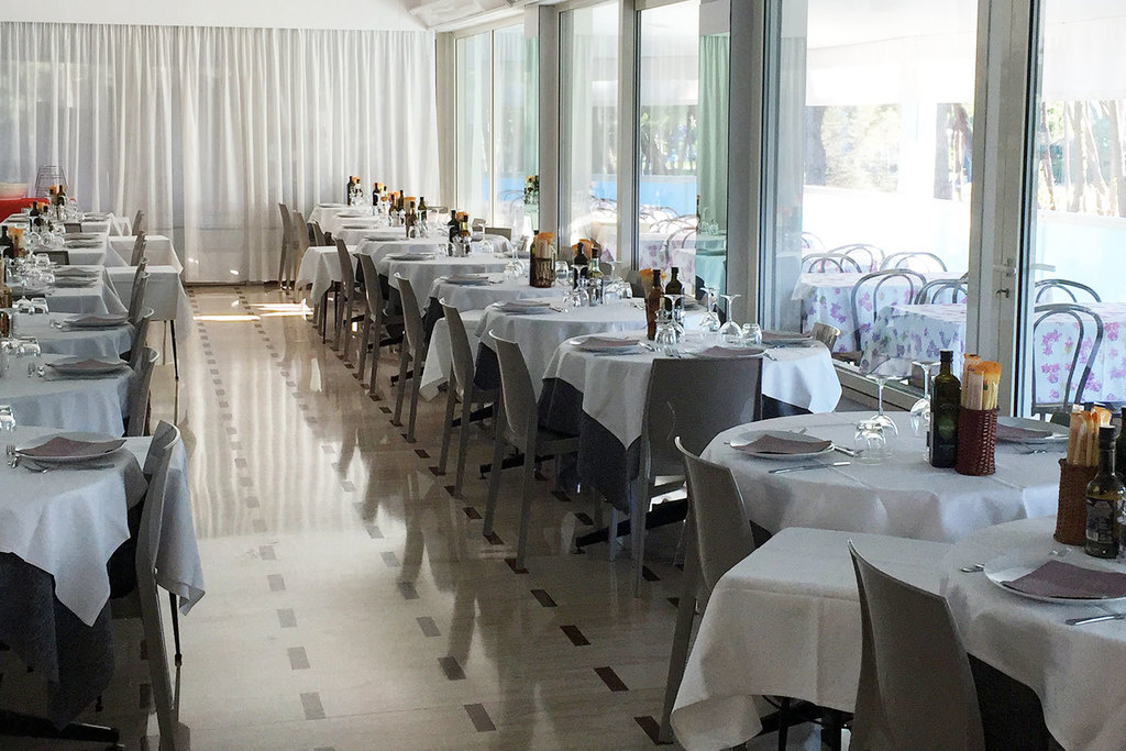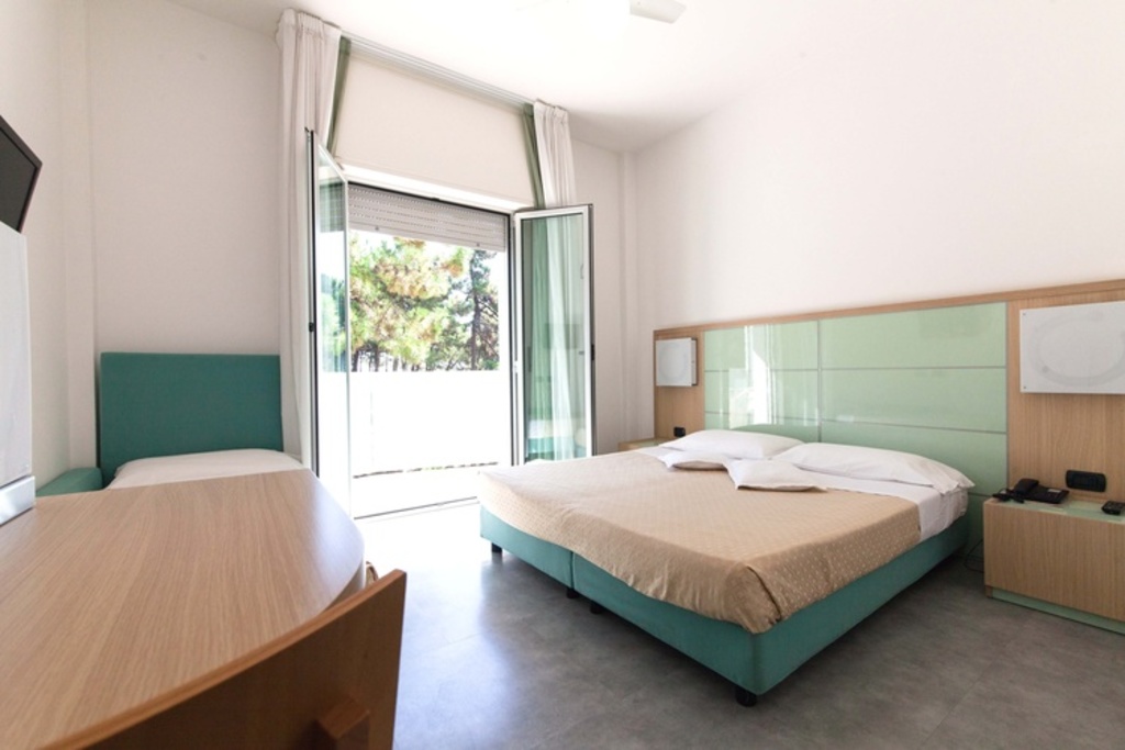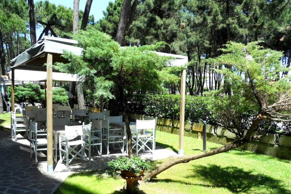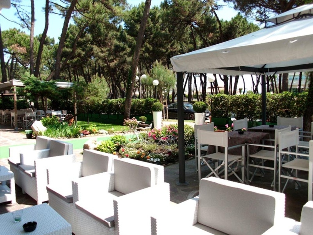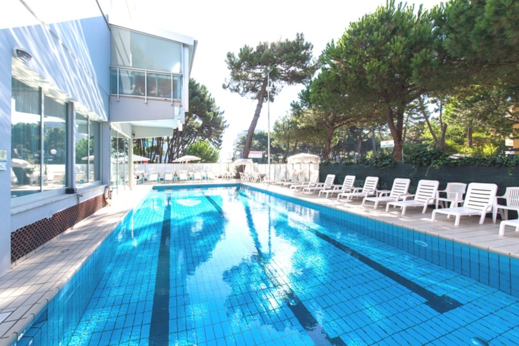 Introduzione: Struttura moderna recentemente rinnovata, è situata in posizione tranquilla ed ombreggiata da un rigoglioso parco di pini, a soli 170 m dalla spiaggia e a 1.500 m dalla centralissima Rotonda 1° Maggio.CARATTERISTICHE: ambienti comuni ampi e confortevoli, luminosa hall con bar rinnovati, sala soggiorno, sala TV, spazio dedicato per bambini con giochi, sala ristorante climatizzata e ascensore. All'esterno dispone di ampio giardino, area giochi, piscine per adulti e bambini e idromassaggio Jacuzzi riscaldato. Parcheggio privato fino ad esaurimento posti.RISTORAZIONE: prima colazione a buffet dolce e salato, cucina tipica romagnola con pasta e dolci fatti in casa, pranzo e cena con quattro menu a scelta a base di carne e pesce, buffet di verdure e antipasti. Menu differenziati per bambini a richiesta.CAMERE: moderne e confortevoli, sono dotate di balcone, telefono, TV LCD 32", Wi-Fi free, cassetta di sicurezza, mini frigo, ventola a soffitto, aria condizionata e servizi privati con box doccia e asciugacapelli. Triple e quadruple con letto a castello. Camere comunicanti con doppi servizi a richiesta.TUTTO INCLUSO: comprende le bevande ai pasti (acqua, vino locale o soft drinks) e il servizio spiaggia (1 ombrellone + 2 lettini a camera).SERVIZI: biciclette disponibili fino ad esaurimento, Wi-Fi free, Mini Club (4-12 anni) in piscina e spiaggia in orari prestabiliti dal 20.06 al 31.08, serata romagnola settimanale, portiere notturno.