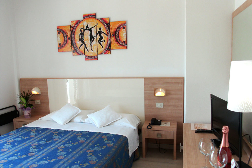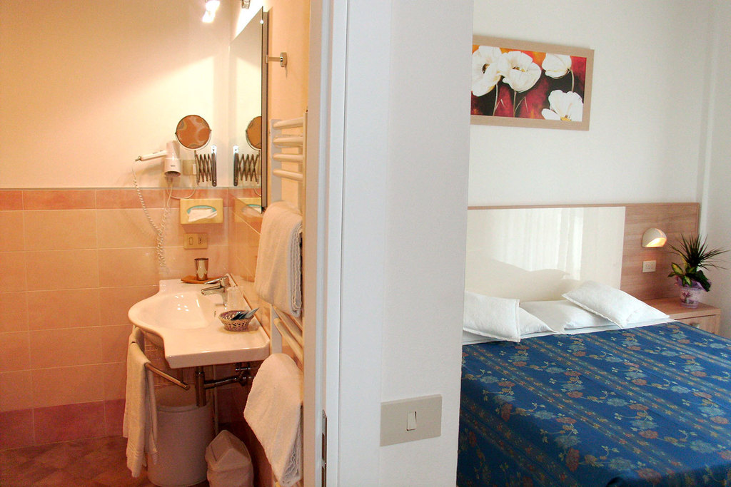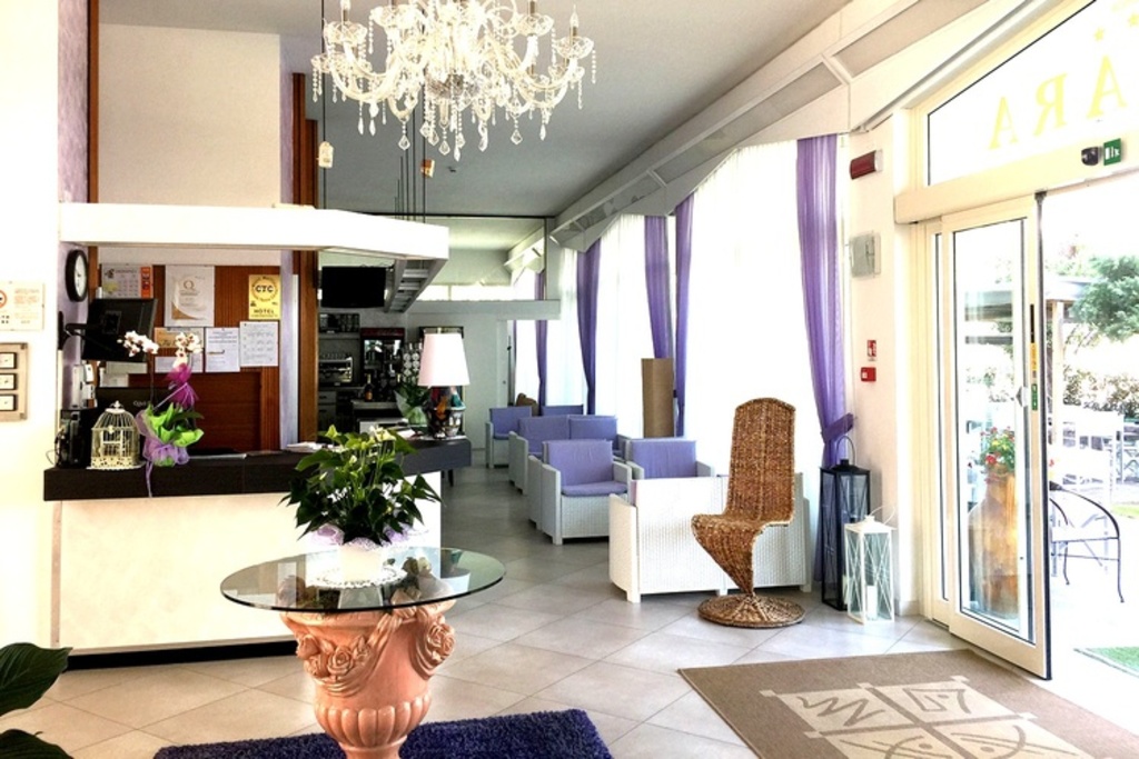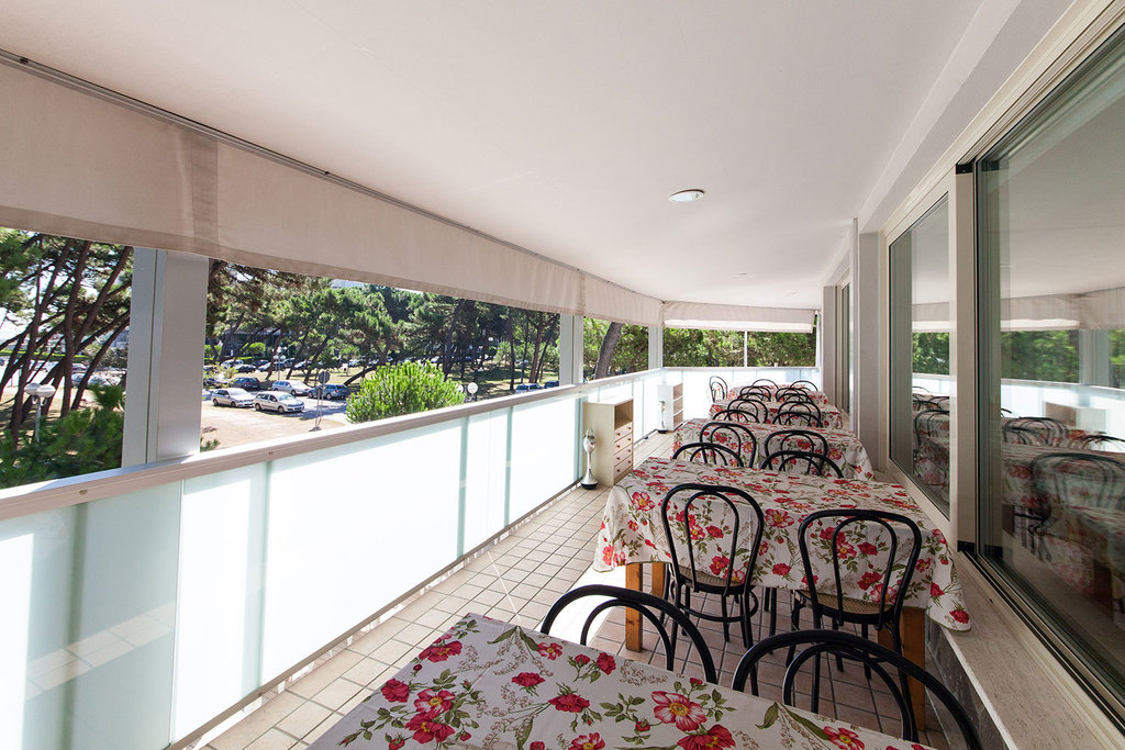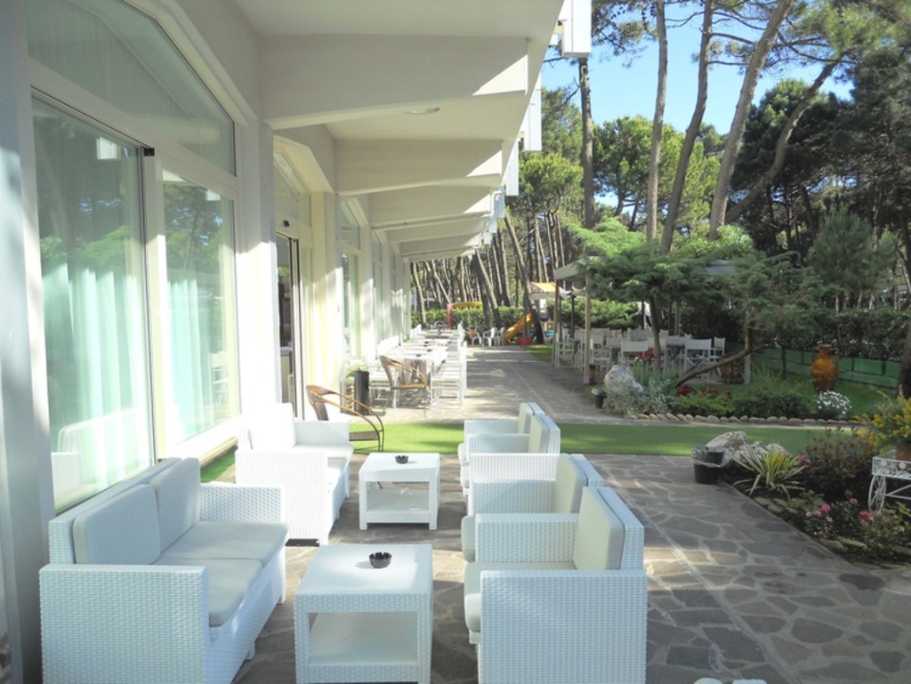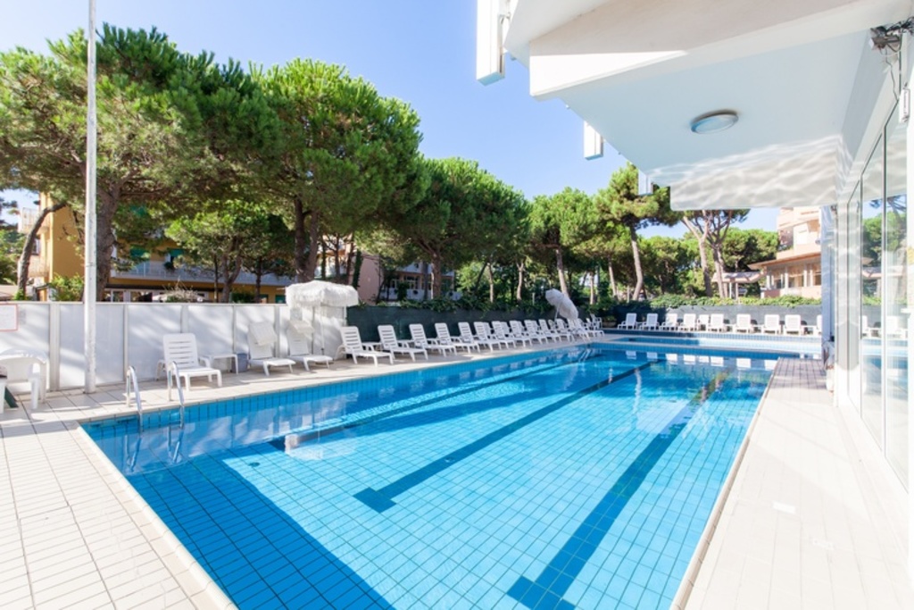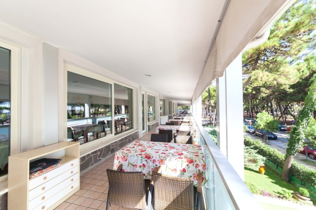 Introduzione: Struttura moderna recentemente rinnovata, è situata in posizione tranquilla ed ombreggiata da un rigoglioso parco di pini, a soli 170 m dalla spiaggia e a 1.500 m dalla centralissima Rotonda 1° Maggio.CARATTERISTICHE: ambienti comuni ampi e confortevoli, luminosa hall con bar rinnovati, sala soggiorno, sala TV, spazio dedicato per bambini con giochi, sala ristorante climatizzata e ascensore. All'esterno dispone di ampio giardino, area giochi, piscine per adulti e bambini e idromassaggio Jacuzzi riscaldato. Parcheggio privato fino ad esaurimento posti.RISTORAZIONE: prima colazione a buffet dolce e salato, cucina tipica romagnola con pasta e dolci fatti in casa, pranzo e cena con quattro menu a scelta a base di carne e pesce, buffet di verdure e antipasti. Menu differenziati per bambini a richiesta.CAMERE: moderne e confortevoli, sono dotate di balcone, telefono, TV LCD 32", Wi-Fi free, cassetta di sicurezza, mini frigo, ventola a soffitto, aria condizionata e servizi privati con box doccia e asciugacapelli. Triple e quadruple con letto a castello. Camere comunicanti con doppi servizi a richiesta.TUTTO INCLUSO: comprende le bevande ai pasti (acqua, vino locale o soft drinks) e il servizio spiaggia (1 ombrellone + 2 lettini a camera).SERVIZI: biciclette disponibili fino ad esaurimento, Wi-Fi free, Mini Club (4-12 anni) in piscina e spiaggia in orari prestabiliti dal 20.06 al 31.08, serata romagnola settimanale, portiere notturno.