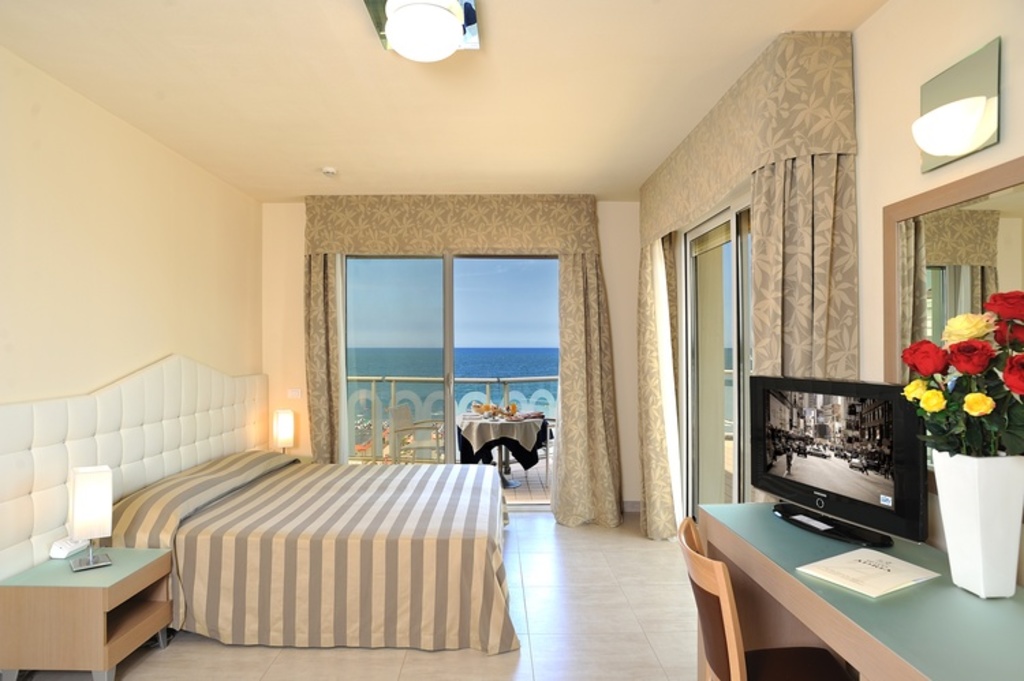 DURATA SOGGIORNI: SOGGIORNI DI MIN. 3 NOTTI CON INGRESSO LIBERO, ESCLUSO PERIODO D; MIN. 7 NOTTI CON INGRESSO LIBERO, PERIODO DNote: (*) acqua inclusa ai pasti; camere Comfort: solo triple + culla; camere Vista Pineta e Vista Mare: possibilità di 3° e 4° letto.Riduzione 3° e 4° letto adulti: 3° letto 10%, 4° letto 30%.Riduzione FB: € 5 per persona al giorno.Riduzione HB: € 10 al giorno.Supplemento singola Vista Mare: € 15 al giorno (sulle tariffe Vista Mare).Supplemento camera Comfort: € 10 per persona al giorno periodo A, € 15 periodi B-C, € 20 periodo D (sulle tariffe Vista Mare).Supplemento soggiorni inferiori alle 3 notti: 30%.TASSA DI SOGGIORNO (obbligatoria): da saldare in loco, dove previsto dal relativo Regolamento Comunale.Check in: dalle ore 10:00 alle ore 15:00Check out: entro le ore 10:00