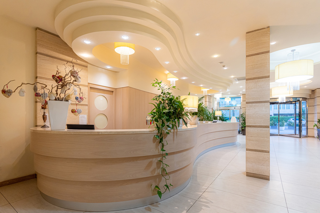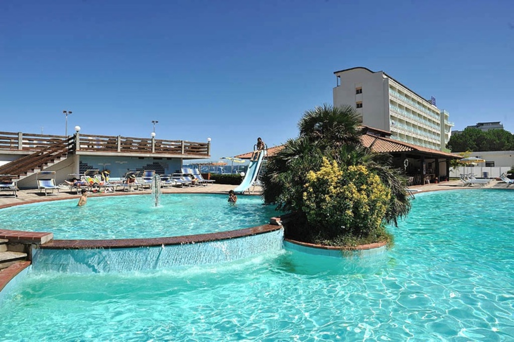 Introduzione: Aperto tutto l'anno e situato in posizione frontemare nella zona più verde di Milano Marittima, l'anello del Pino, è stato recentemente ristrutturato ed ampliato. Il centro dista appena 1,5 km e la spiaggia privata antistante è raggiungibile tramite comodo percorso pedonale, privo di attraversamenti stradali.CARATTERISTICHE: ampi e luminosi ambienti comuni climatizzati, sale soggiorno con bar e TV, due grandi ascensori panoramici, sala ristorante, giardino e ampio parcheggio privato non custodito disponibile fino ad esaurimento posti. Sala riunioni e conferenze. Grande piscina con profondità da 0,80 a 2,20 m per adulti e bambini attrezzata con scivolo, trampolino, idromassaggio, vasto solarium con lettini ed ombrelloni e piccolo bar per lunch e pranzi informali (21.05 - 09.09). Sul retro della struttura, lato mare, piccola piscina idromassaggio climatizzata. Animali ammessi di tutte le taglie senza supplemento.RISTORAZIONE: prima colazione a buffet dolce e salata, quattro menu a scelta a base di carne e pesce, buffet di verdure a pranzo e di antipasti a cena. Pasti differenziati per bambini a richiesta. Acqua inclusa ai pasti.CAMERE: Vista Pineta o Vista Mare: rinnovate nel mobilio, sono dotate di balcone, telefono, TV LED 26", Wi-Fi free, aria condizionata, mini frigo, cassaforte e servizi privati con vasca o box doccia e asciugacapelli; Le camere triple e quadruple, di dimensione molto ridotte, dispongono di letto a castello e non sono adatte ad ospitare ragazzi di alta statura; Comfort: confortevoli, spaziose e modernamente ed elegantemente arredate, con ampio balcone vista mare o pineta. Camera Comfort (vista pineta) a norma per disabili e camere comunicanti (con doppi servizi e due balconi) disponibili a richiesta.SERVIZI: lezioni di nuoto in piscina (a richiesta). Wi-Fi free in tutta la struttura. Serate a tema e animazione "soft" con Mini Club per bambini (4-12 anni) in spiaggia o in piscina o nella hall dell'hotel (01.06 - 28.08). Servizio spiaggia incluso (1 ombrellone + 2 lettini a camera).