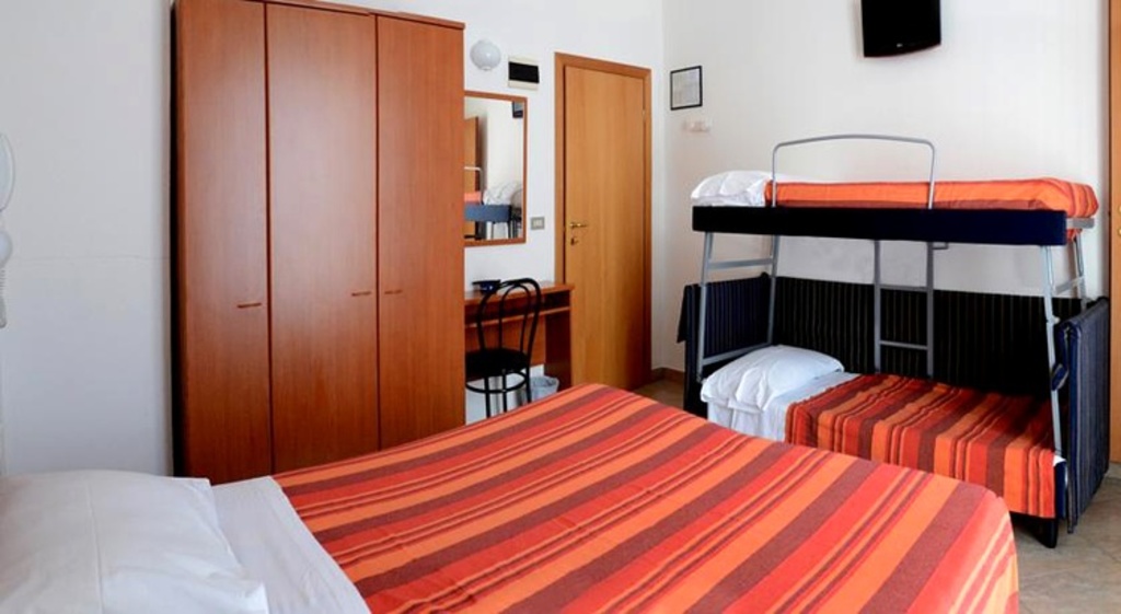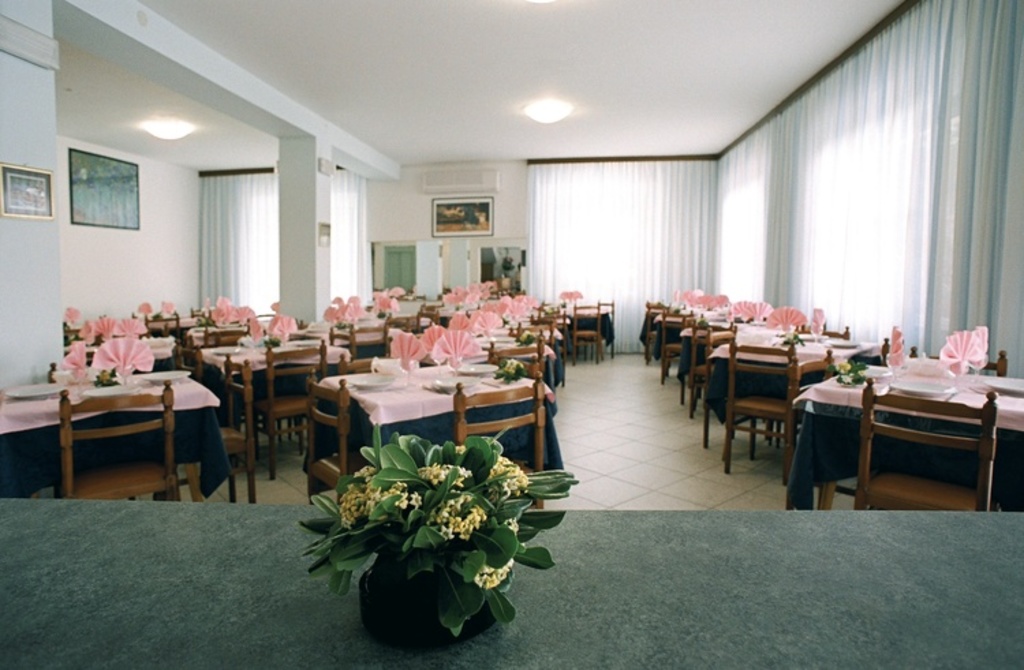 Introduzione: Hotel semplice e tradizionale a gestione familiare, è situato in zona centrale e tranquilla a 500 m dal mare.CARATTERISTICHE: sala ristorante climatizzata, bar, piccolo soggiorno con TV, spazio esterno attrezzato e ascensore a norma per disabili. Parcheggio custodito a pagamento (fino ad esaurimento posti) a 1 km dall'hotel (senza servizio navetta).RISTORAZIONE: colazione a buffet con salato e dolci fatti in casa, due menu a scelta a base di carne e pesce, buffet di verdure. Pasti differenziati per bambini a richiesta. Bevande incluse ai pasti (acqua, vino locale, birra e soft drinks) nelle tariffe FBB.CAMERE: in gran parte con balcone, sono dotate di telefono, cassaforte, Wi-Fi free, TV LCD e servizi privati con box doccia (in parte) e asciugacapelli; aria condizionata con supplemento.TUTTO INCLUSO: comprende le bevande ai pasti (acqua, vino locale, birra e soft drinks) e il servizio spiaggia (1 ombrellone + 2 lettini a camera).SERVIZI: biciclette. Wi-Fi free. In spiaggia convenzionata (bagni 39): beach volley, beach tennis, bocce, ping pong, parco giochi, Mini Club, risveglio muscolare, balli di gruppo, tornei e area riservata per cani su prenotazione a pagamento.