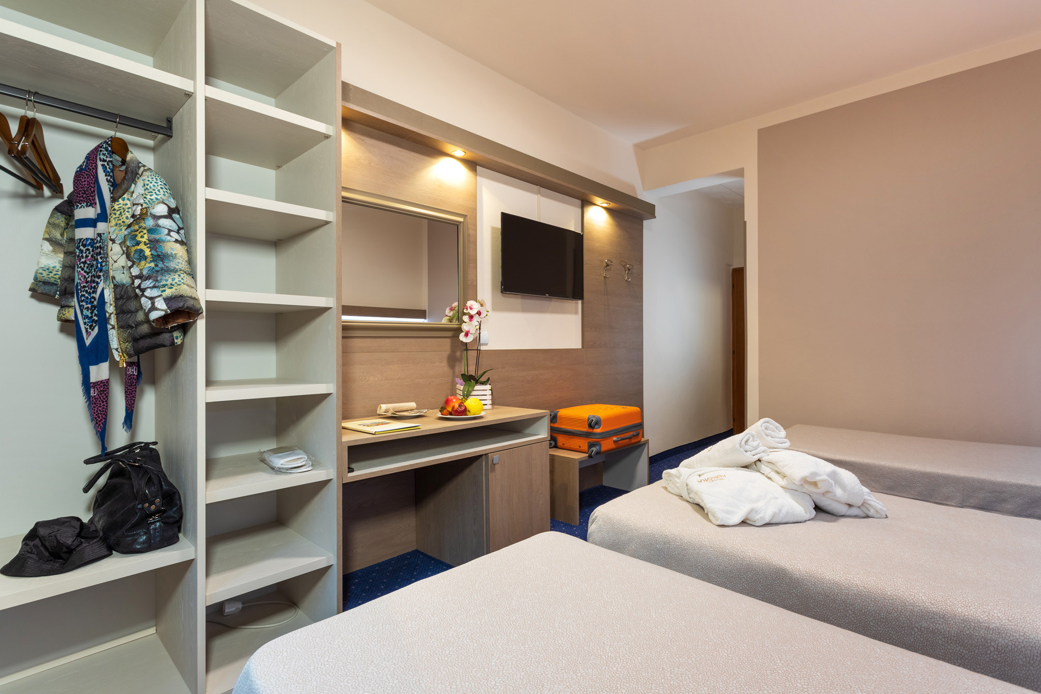 Le camere Standard (occupazione massima 4 adulti), confortevoli e arredate con cura, sono dotate di servizi privati con doccia, asciugacapelli, telefono, TV-Sat, cassaforte, accappatoio (su richiesta a pagamento), alcune con balcone. Le camere quadruple potrebbero avere letto a castello. Camere singole non disponibili.
