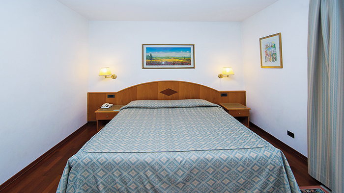 Le camere Standard (16-18 mq - occupazione massima 3 adulti) dispongono di servizi privati con doccia, asciugacapelli, aria condizionata, telefono, TV-Sat, minibar, cassaforte, connessione Wi-Fi (gratuita). Disponibili camere singole (con letto alla francese). Per soggiorni dal 06/01/2026 disponibilità di camere Superior (con supplemento).