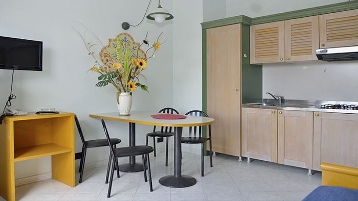 * Pernottamento nella tipologia di appartamento selezionato * Forfait consumi (acqua, luce, gas, aria condizionata) * Pulizia iniziale, prima fornitura di biancheria da letto e da bagno con cambio settimanale e pulizia finale (escluso angolo cottura che è a carico del cliente) * Tessera Club (per soggiorni dal 30/05/2026 al 19/09/2026) che comprende animazione diurna e serale per adulti e bambini con Mini Club 5-10 anni, utilizzo della piscina esterna con lettini secondo disponibilità e della piscina per bambini, utilizzo del campo da tennis, calcetto, bocce, ping-pong, tiro con l'arco e biliardo, corsi collettivi di tennis e di nuoto * 1 buono spesa Eurospin di 50 euro per unità per soggiorno (per soggiorni di minimo 7 notti dal 11/07/2026 al 29/08/2026 ultimo check-out - il buono verrà inviato via mail qualche giorno prima della partenza) * Connessione Wi-Fi nelle aree comuni * 1 posto auto ad appartamento