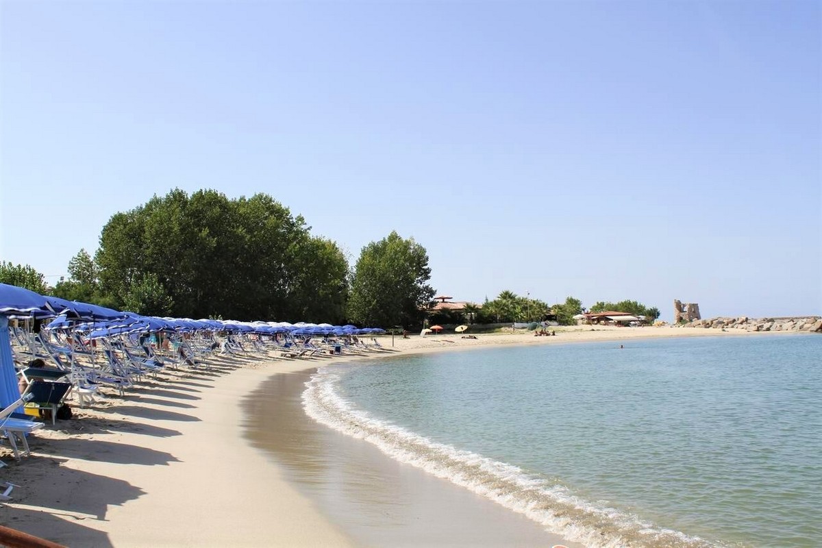 La spiaggia privata di sabbia fine si trova a circa 300 metri dalla struttura. Il servizio spiaggia è incluso nella Tessera Club e comprende 1 ombrellone, 1 sedia a sdraio e 1 lettino a camera a partire dalla 3° fila. In spiaggia è presente un servizio bar, docce e per i più piccoli un parco giochi sul prato adiacente.