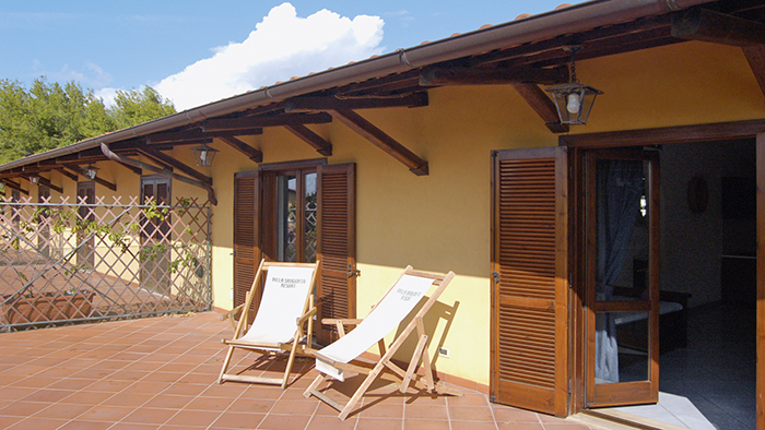 - Monolocale 2-3 persone (circa 25 mq - occupazione massima 3 adulti): situati al piano terra con piccolo giardino, sono composti da letto matrimoniale con possibilità del letto aggiunto e spazio antistante con sedie a sdraio.