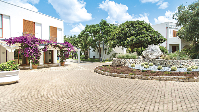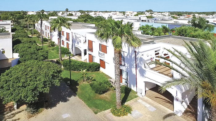 La spiaggia di sabbia bianca e fine, situata al di là della strada, è attrezzata con ombrelloni e lettini secondo disponibilità. Il servizio spiaggia è prenotabile e pagabile esclusivamente in loco all'arrivo (secondo disponibilità e secondo listino prezzi in base alla fila assegnata).