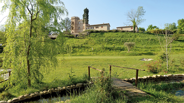 Il Castello Montegiove Country House sorge alle porte di Fano sulle prime pendici del colle omonimo dalle quali si gode la vista del mare, della città e delle verdi colline circostanti. Il campo pratica golf ed i giardini dalle aiuole fiorite incorniciano questa incantevole residenza, che, destinato in origine alla villeggiatura estiva, comprende anche altri due nuclei abitativi che un tempo accoglievano gli spazi di servizio come la scuderia, i magazzini e le serre, ora armonicamente saldati al corpo centrale mediante un portico ed una piazzetta. Il Castello Montegiove è situato a 5 km dal mare,