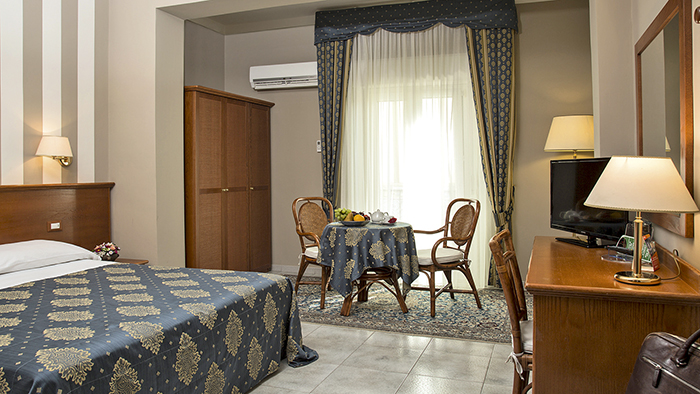 Le camere Standard (occupazione massima 3 adulti + 1 infant fino a 3 anni non compiuti) dispongono di servizi privati ??con doccia, set di cortesia, asciugacapelli, aria condizionata, telefono, TV-Sat, cassaforte, minibar, connessione Wi-Fi (gratuita) e balcone. Su richiesta al call center: camere doppie ad uso singolo (con supplemento) e camere idonee per ospiti diversamente abili.