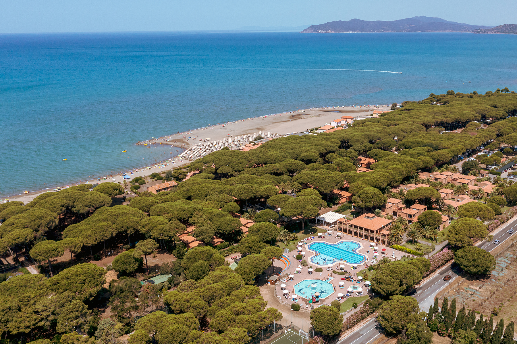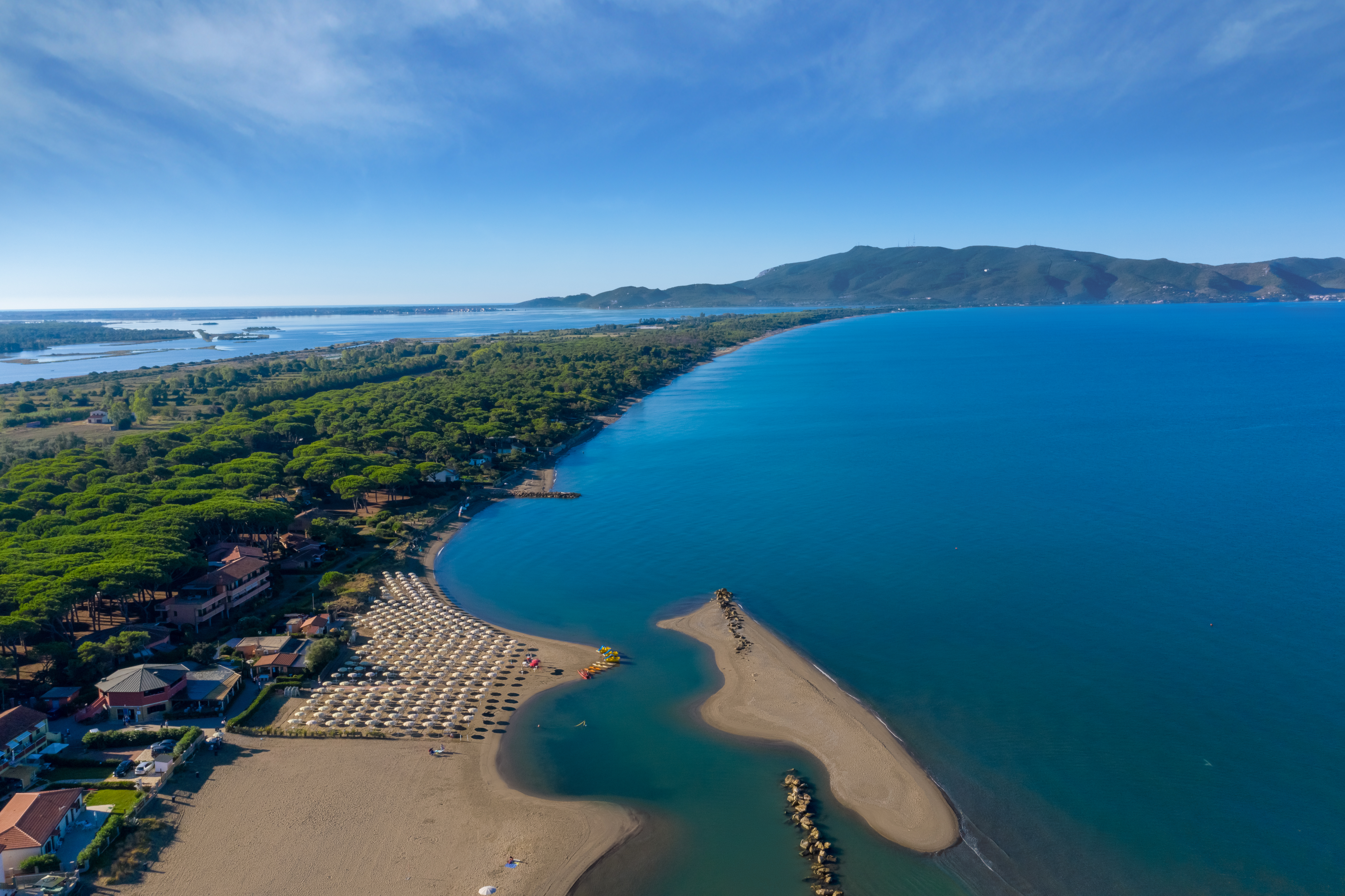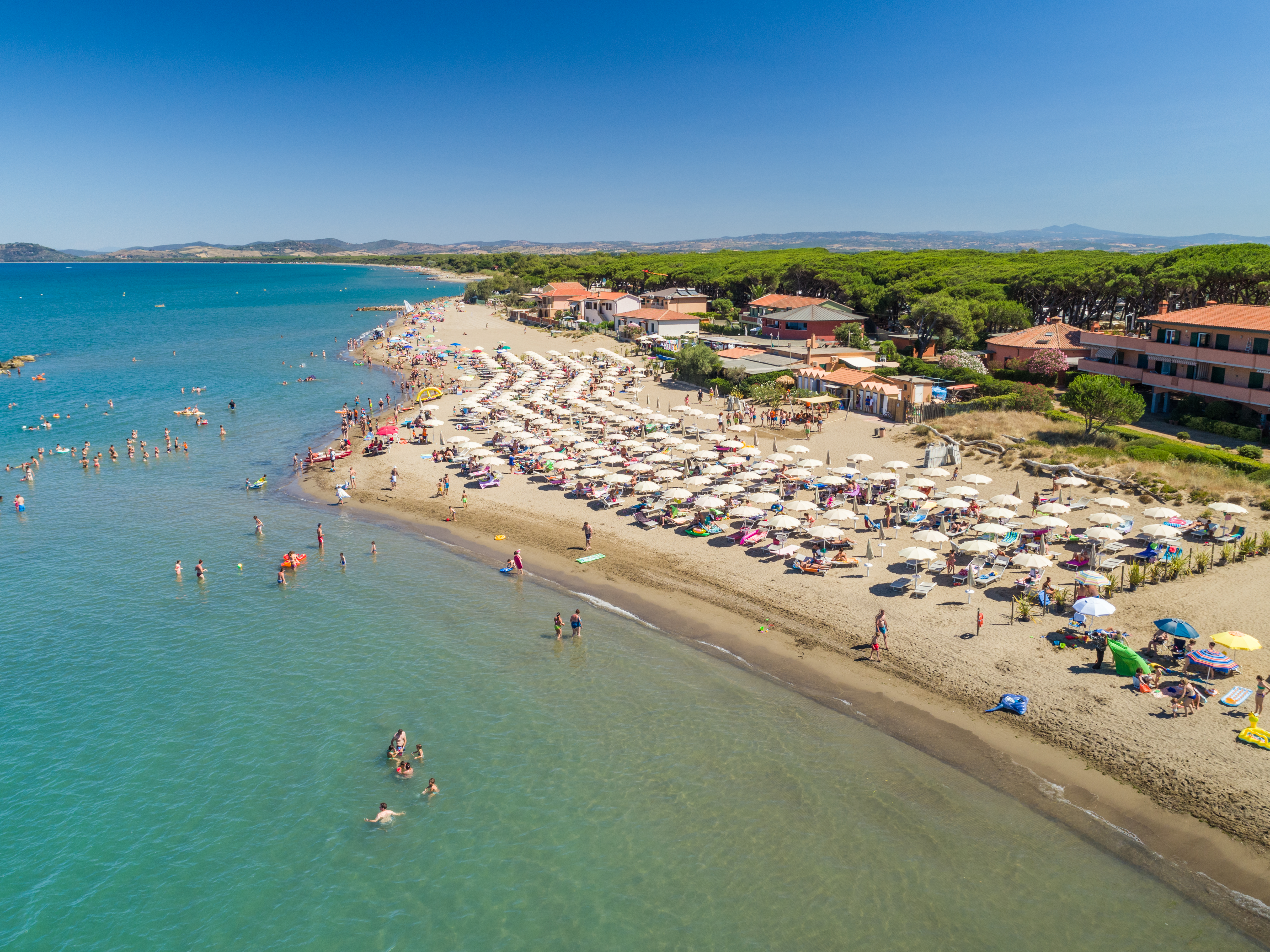 La spiaggia di sabbia fine si trova di fronte alla struttura e digrada dolcemente rendendola perfetta per i più piccoli o per fare passeggiate. Il servizio spiaggia è incluso per soggiorni dal 01/06/2026 (per soggiorni in Villino Giannutri e Villino Giglio - per soggiorni in Mobilhome a pagamento in loco secondo disponibilità) e comprende 1 ombrellone e 2 lettini ad unità. Inoltre sono disponibili un beach bar, canoe e pedalò.