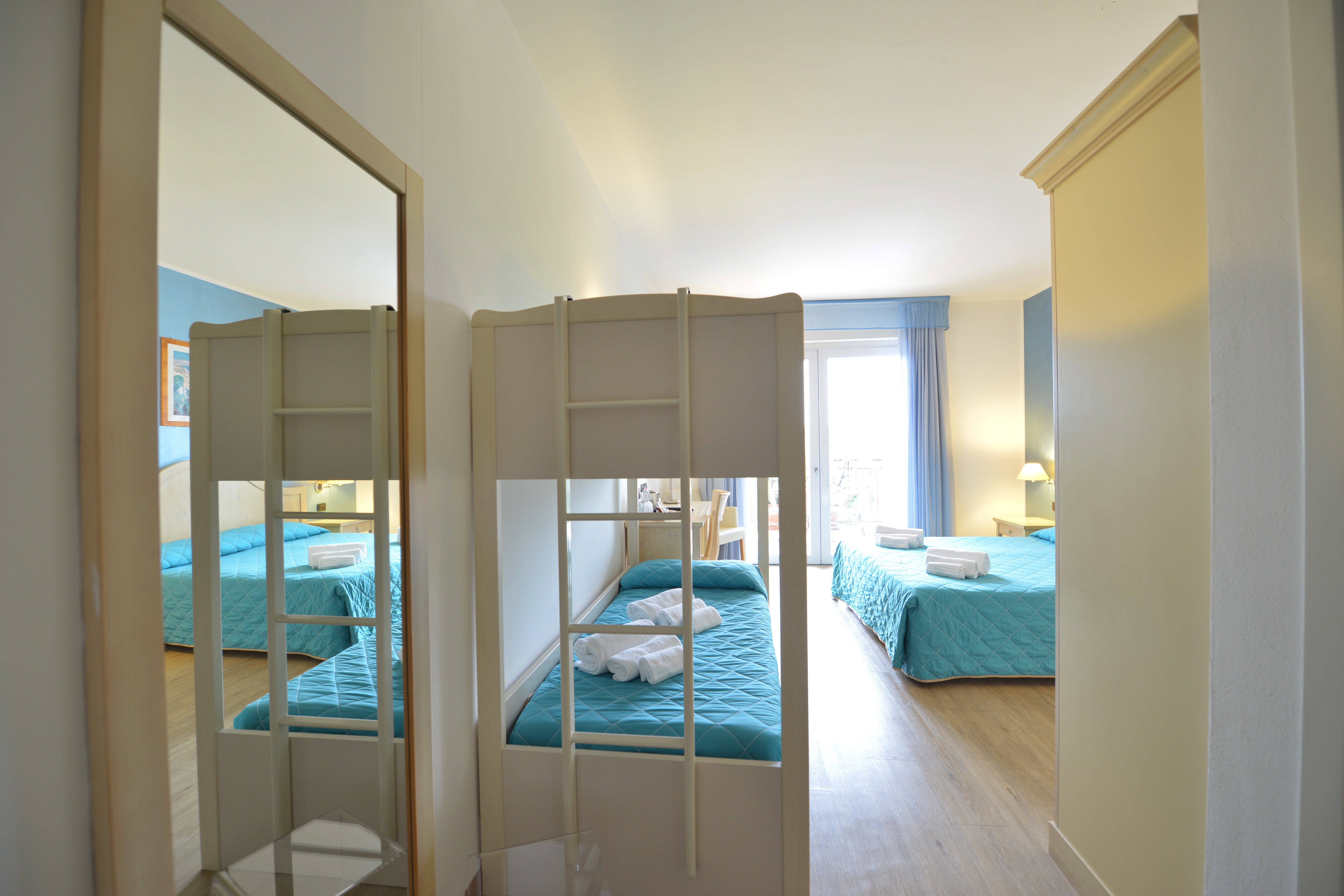 Le camere Standard (15 mq, occupazione massima 4 adulti) arredate in stile moderno dispongono di servizi privati con doccia, asciugacapelli, bollitore, cassaforte, aria condizionata, telefono, TV-Sat, connessione Wi-Fi (gratuita), balcone. Le camere multiple sono con letto a castello. Disponibili camere singole.