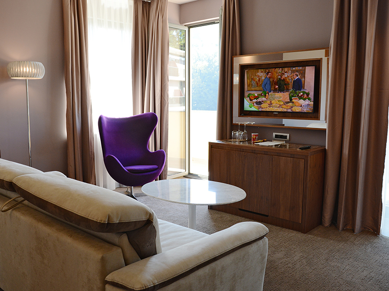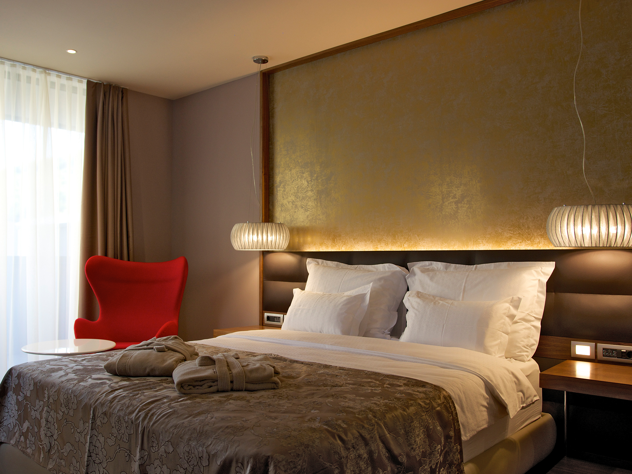 Le camere dispongono di servizi privati con doccia o vasca, aria condizionata, asciugacapelli, set di cortesia, cassaforte, minibar, TV-Sat, telefono, radio, connessione Wi-Fi (gratuita), terrazza o balcone. Sono nelle seguenti tipologie: Standard (occupazione massima 2 adulti + 1 minore fino a 12 anni non compiuti) e Superior (occupazione massima 2 adulti).