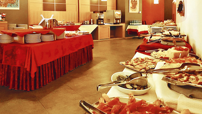 * Mezza pensione con colazione a buffet e cena con servizio al tavolo con primo, secondo, buffet di insalate/antipasti, dessert