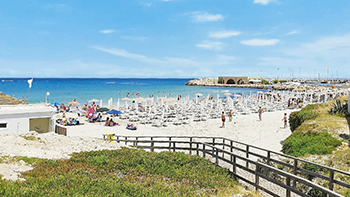 La spiaggia di San Foca, di sabbia bianca e finissima, si trova a circa 950 metri ed è raggiungibile con servizio navetta ad orari prestabiliti. Il servizio spiaggia è incluso e comprende 1 ombrellone e 2 lettini ad appartamento (con postazione fissa per tutta la settimana, in 5 o 6 fila).