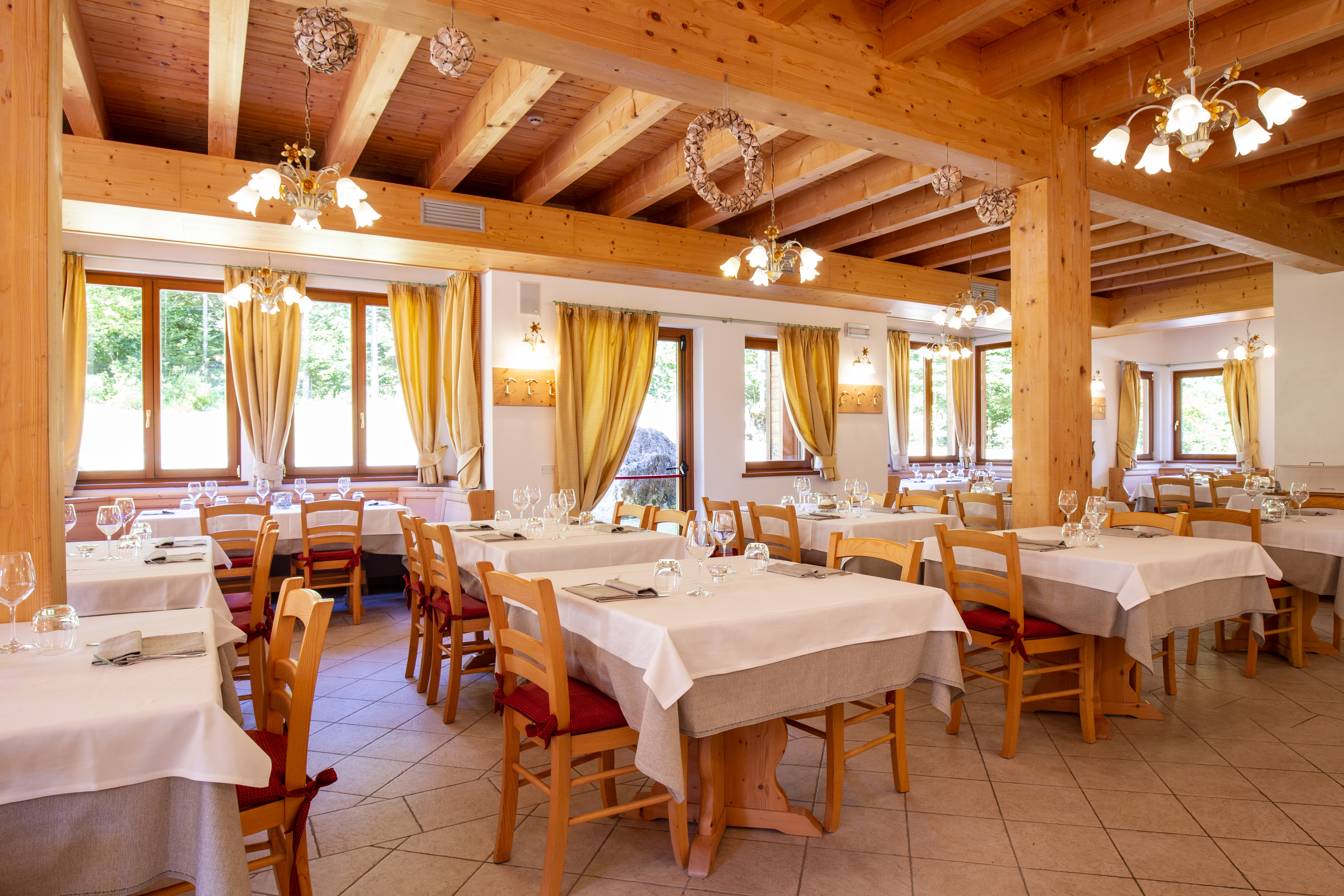A disposizione degli ospiti reception (07:30-21:00), ascensore, ristorante (possibilità di menu per intolleranze, allergie alimentari e vegani), bar, sala TV, sala lettura, deposito sci, giardino, area giochi, area benessere (aperta dalle dalle 14:00 alle 19:00 su prenotazione e a pagamento) con sauna, idromassaggio, tisaneria e area relax, kit spa (accappatoio, ciabatte, telo), palestra attrezzata con tapis roulant, ciclette e pesi, solarium in giardino con biolago, noleggio e-bike e ciaspole (a pagamento), culla per infant 0-3 anni non compiuti su richiesta secondo disponibilità (15 euro al giorno da pagare in loco), connessione Wi-Fi nelle aree comuni (gratuita), parcheggio secondo disponibilità (gratuito).